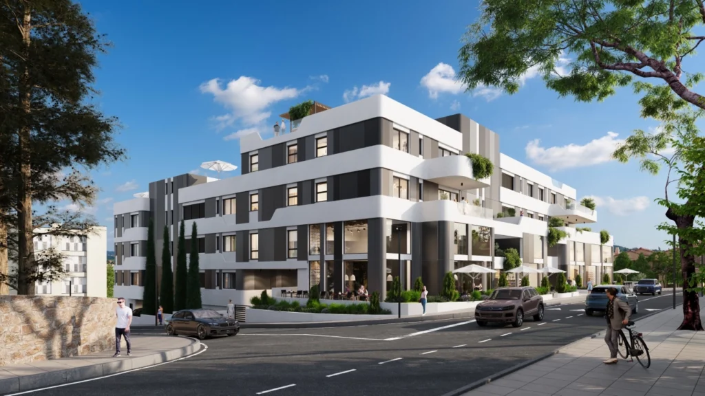 Located in Agios Athanasios, one of Limassol’s most desirable residential areas, this modern mixed-use complex offers a refined balance between suburban tranquility and easy access to the city. Set on an elevated position, the project enjoys panoramic sea views and a sense of openness, while maintaining privacy and security within a gated environment.