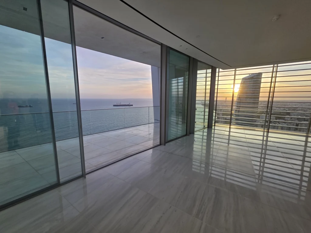 Luxury 3 bedroom apartment for sale in Neapolis, Limassol, in a prestigious residential complex — the tallest building on the coast of Cyprus and a true symbol of modern architecture. The apartment is located on the 29th floor, which provides stunning panoramic views of the sea and the city. The total covered area is 164.15 m2, including a spacious covered veranda. The interiors are made with impeccable attention to detail, combining refined style, comfort and advanced technology. The project offers a new level of luxury, combining the atmosphere of a private home with the comforts of a five-star hotel. Residents of the complex have access to a luxurious lobby, a pool area with a bar, a gym, a sauna and other premium amenities.