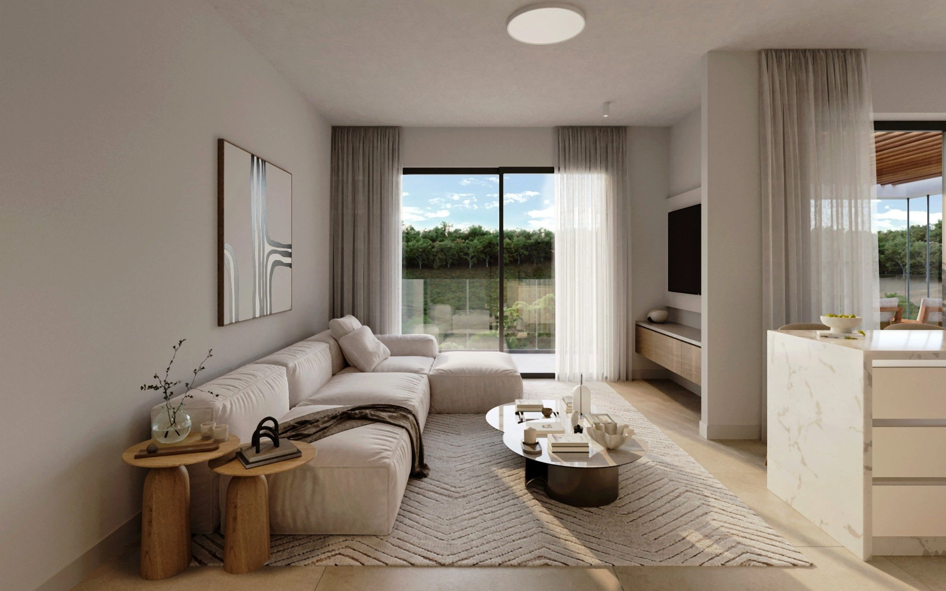 Construction follows rigorous European standards, with reinforced concrete structure, advanced thermal insulation, and high-performance aluminum glazing. Energy Efficiency Class A, individual photovoltaic systems, solar water heating, split-unit climate control, and provision for underfloor heating ensure comfort with long-term sustainability.
