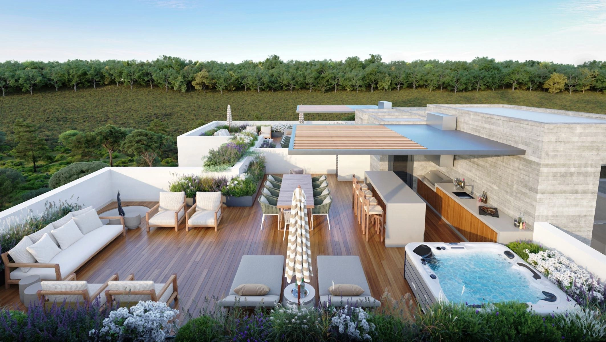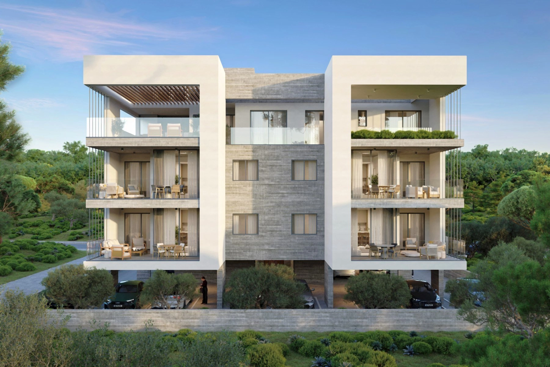 The architecture is clean and confident, defined by generous verandas, landscaped surroundings, and thoughtfully proportioned interiors filled with natural light. Select top-floor residences are complemented by private roof terraces with covered BBQ areas and provision for jacuzzi installations, creating elevated spaces for entertaining or quiet retreat.
