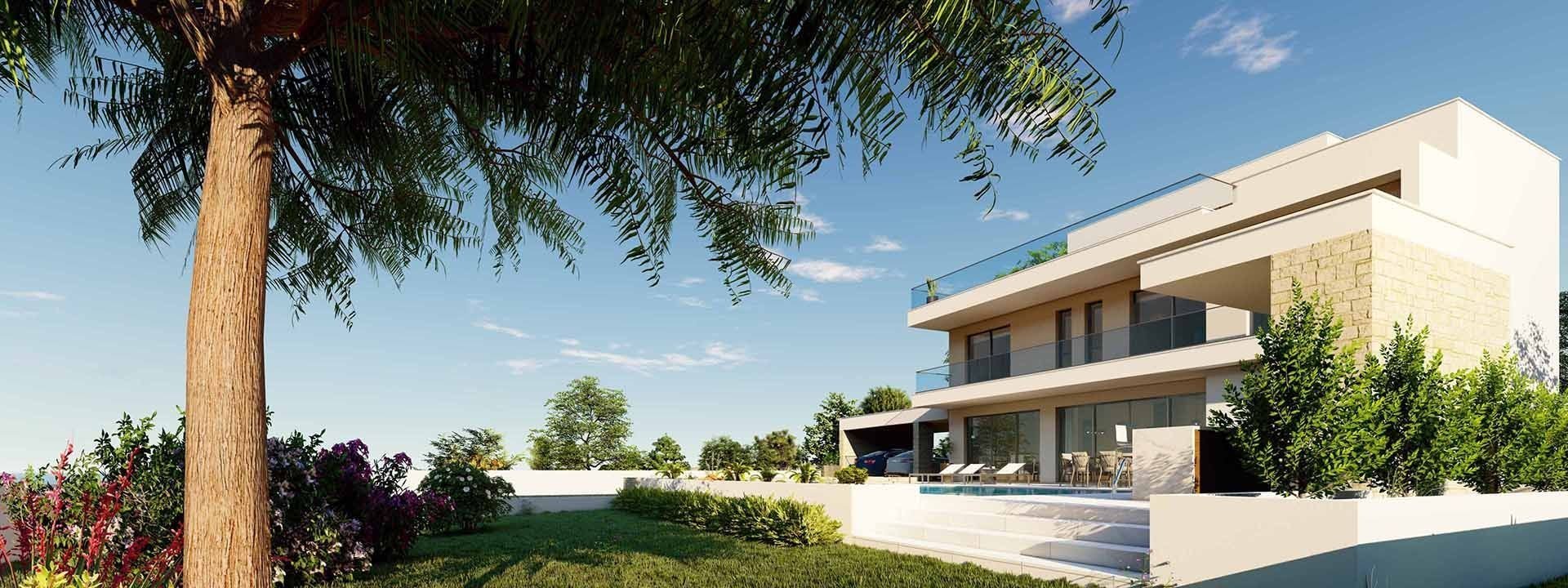 Modern 4 bedroom villa for sale with four levels, designed in a large plot of 1,055 m2 in the renowned Sea Caves area of Peyia.