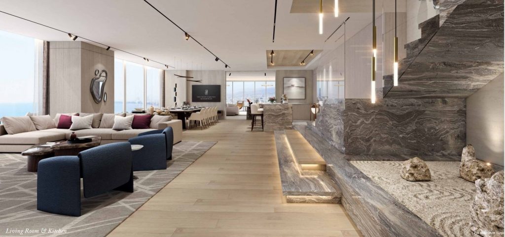 The open-plan layout of each residence and the spacious private terraces give