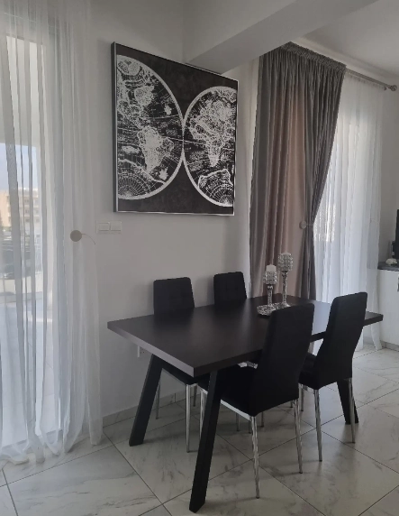 Two-bedroom apartment of 101 m2 for sale in Livadia, Larnaca. The apartment includes 2 bedrooms, 2 bathrooms, a living room, a balcony, a large storage room and 1 covered parking space. The apartment is located on the 2nd floor. The property is unfurnished, equipped with an air conditioning system in all rooms, an installed fireplace with a chimney, a photovoltaic solar system, glass shower partitions, large-format tiles of modern Travertine made in Italy, as well as kitchen sets and built-in cabinets from KITWOOD Cyprus made of Italian materials. It is possible to install a spiral staircase from the balcony to access the upper terrace. The building was built in 2025, energy efficiency class A, and an elevator is provided. The residence is located in a quiet and convenient area of Kantaras, next to LIDL Dekelia, close to the beach and the Land of Tomorrow project, close to all necessary infrastructure.