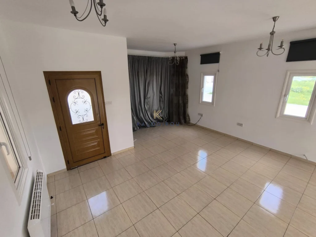 House for Sale in Vergina area, Larnaca. The property offers on the ground floor a well-defined living and dining area, an open plan kitchen and a guest WC.