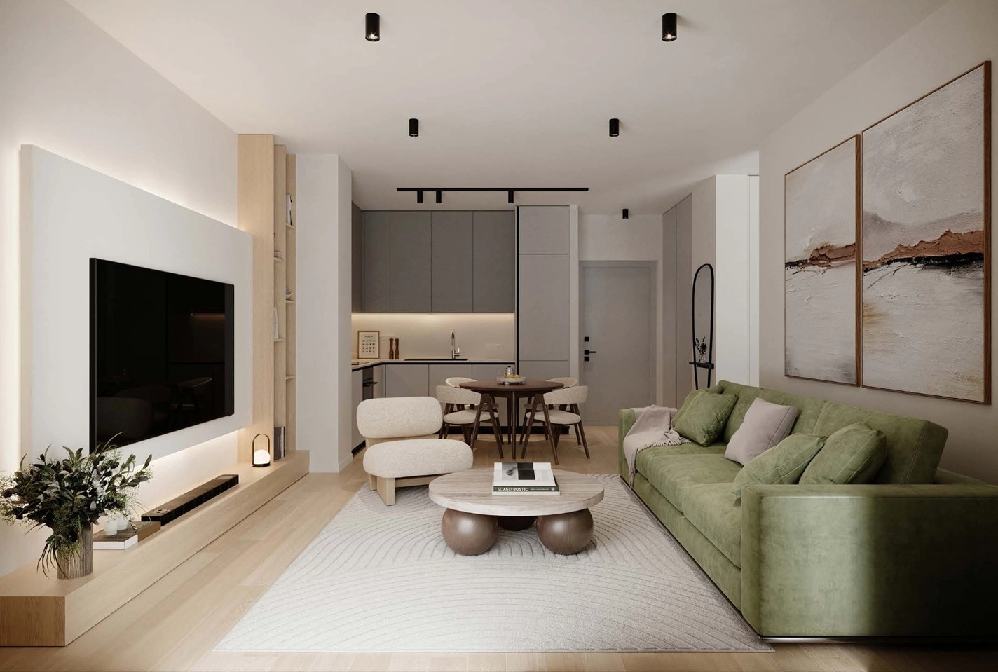 Designed for balance and ease, the apartment offers bright, open-plan living spaces, energy-efficient double-glazed thermal aluminium windows, solid core security entrance door (fire-rated), laminate internal doors, and wall-mounted A/C units throughout. Provision for a basic smart home system allows Wi-Fi control of hot water and A/C functions, along with essential living room lighting automation.