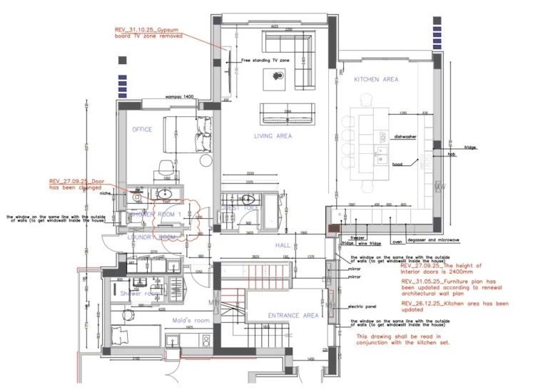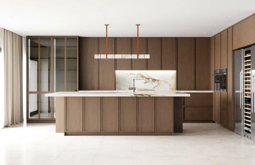 The residence features five bedrooms in total — four spacious family suites with impressive ceiling height and a fully independent maid’s room, ensuring both comfort and functional discretion.
