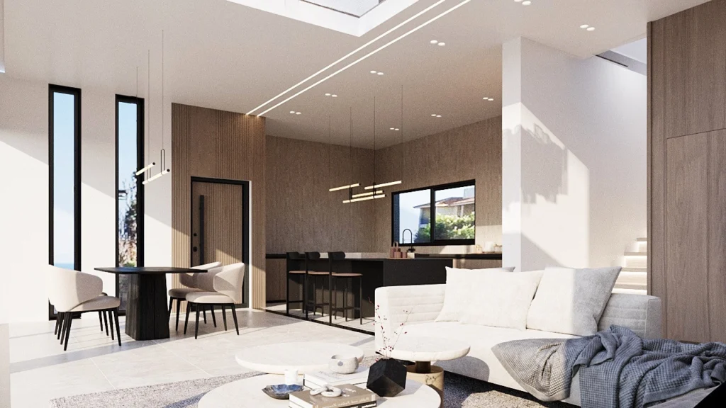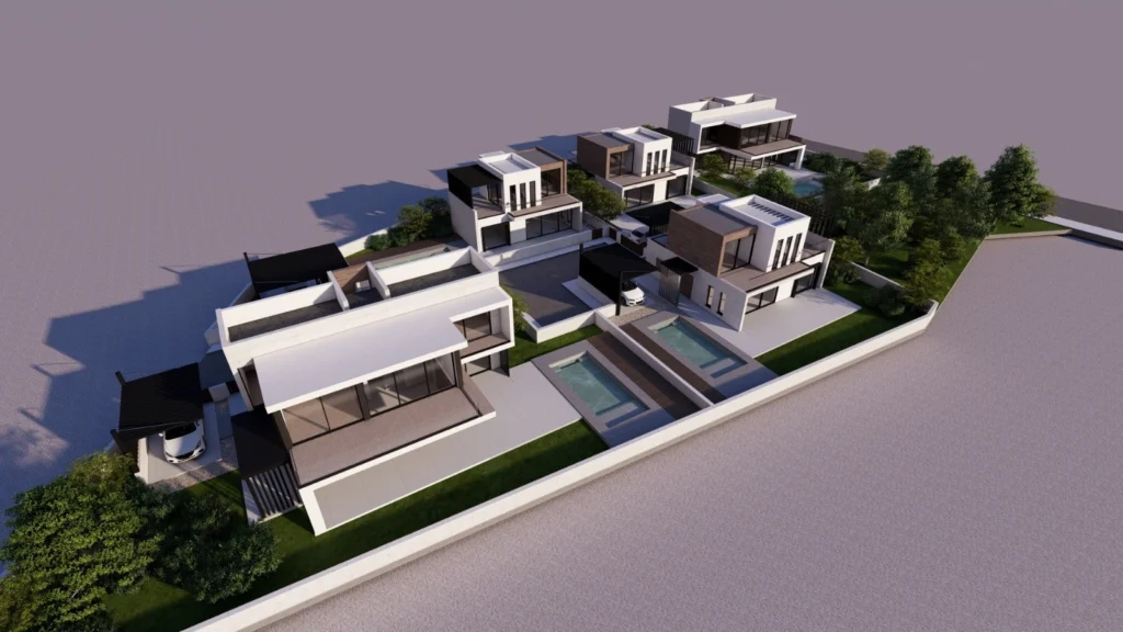 The villa is in Peyia, a popular area close to coastline viewpoints, local shops, cafes and everyday amenities. Exact distances vary by plot location within Peyia.