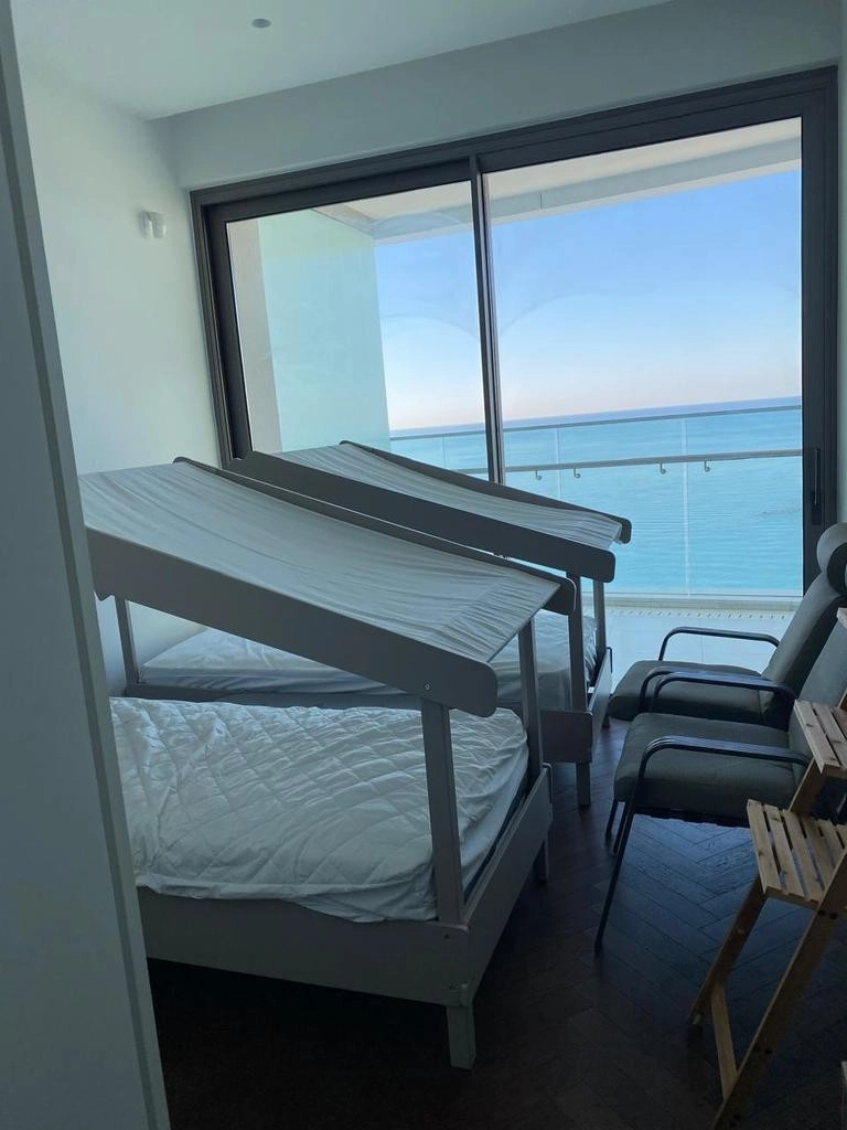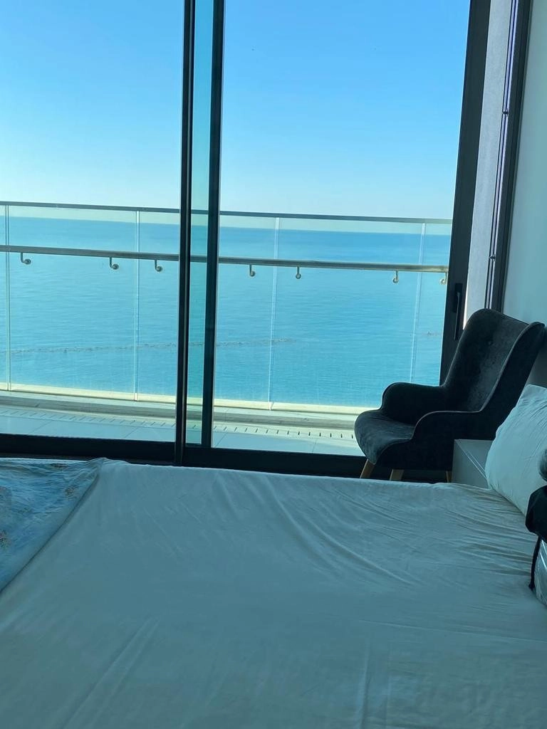 A spacious 2-bedroom apartment right across from the sea in Agios Tychonas, offering panoramic views, 5-star building amenities, and just a short walk to the beach and local shops.