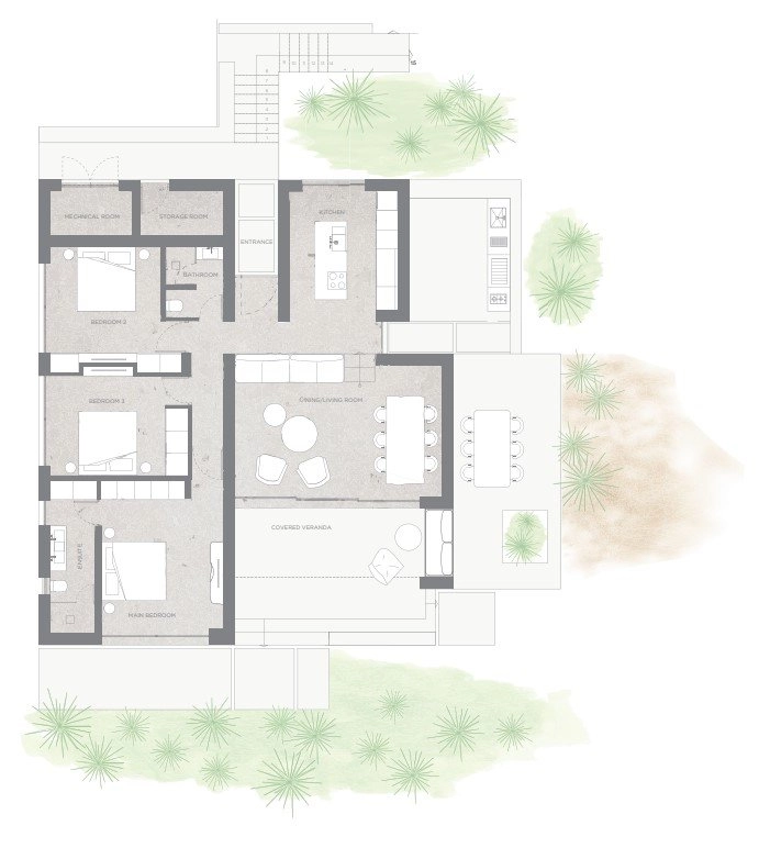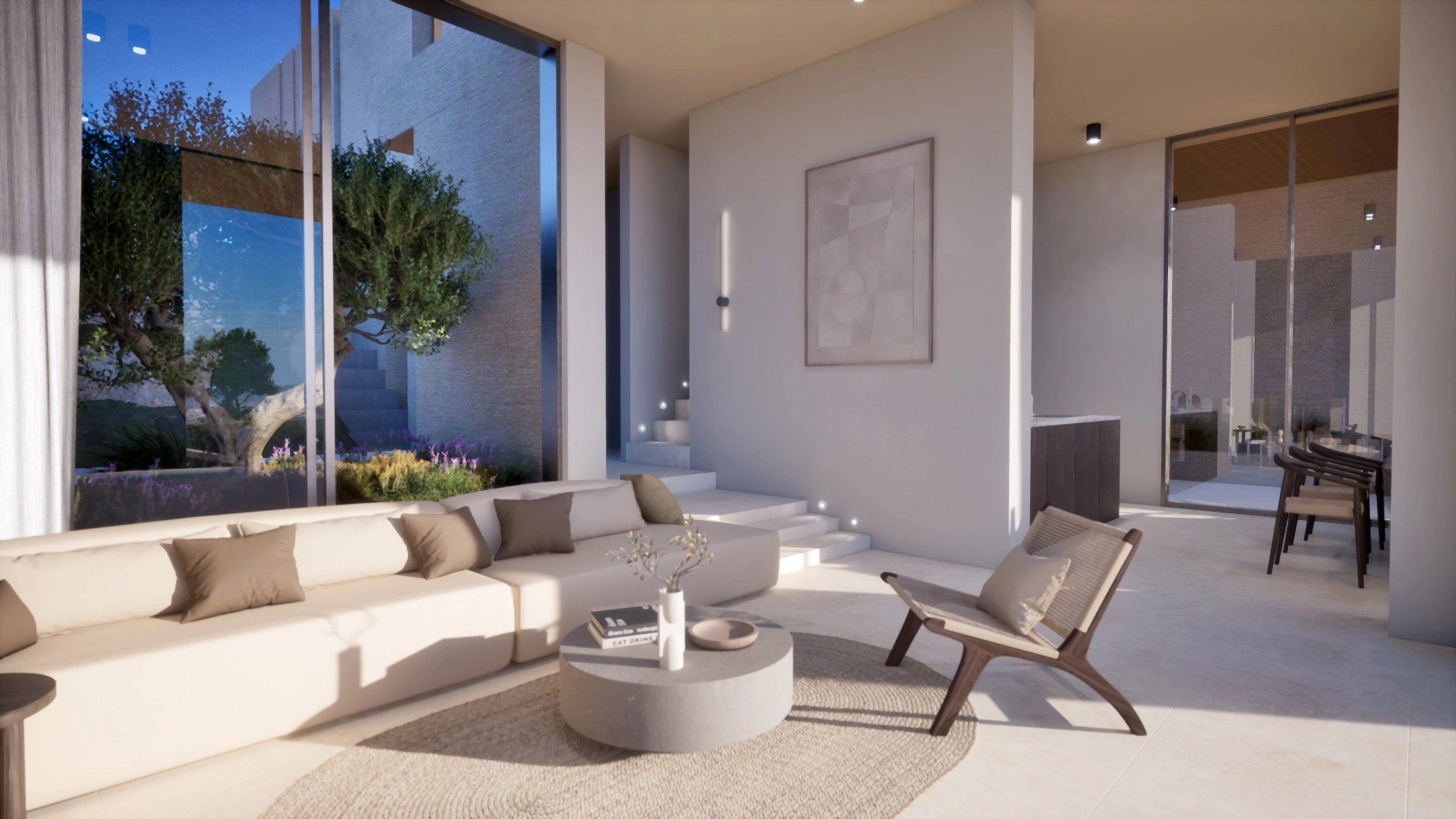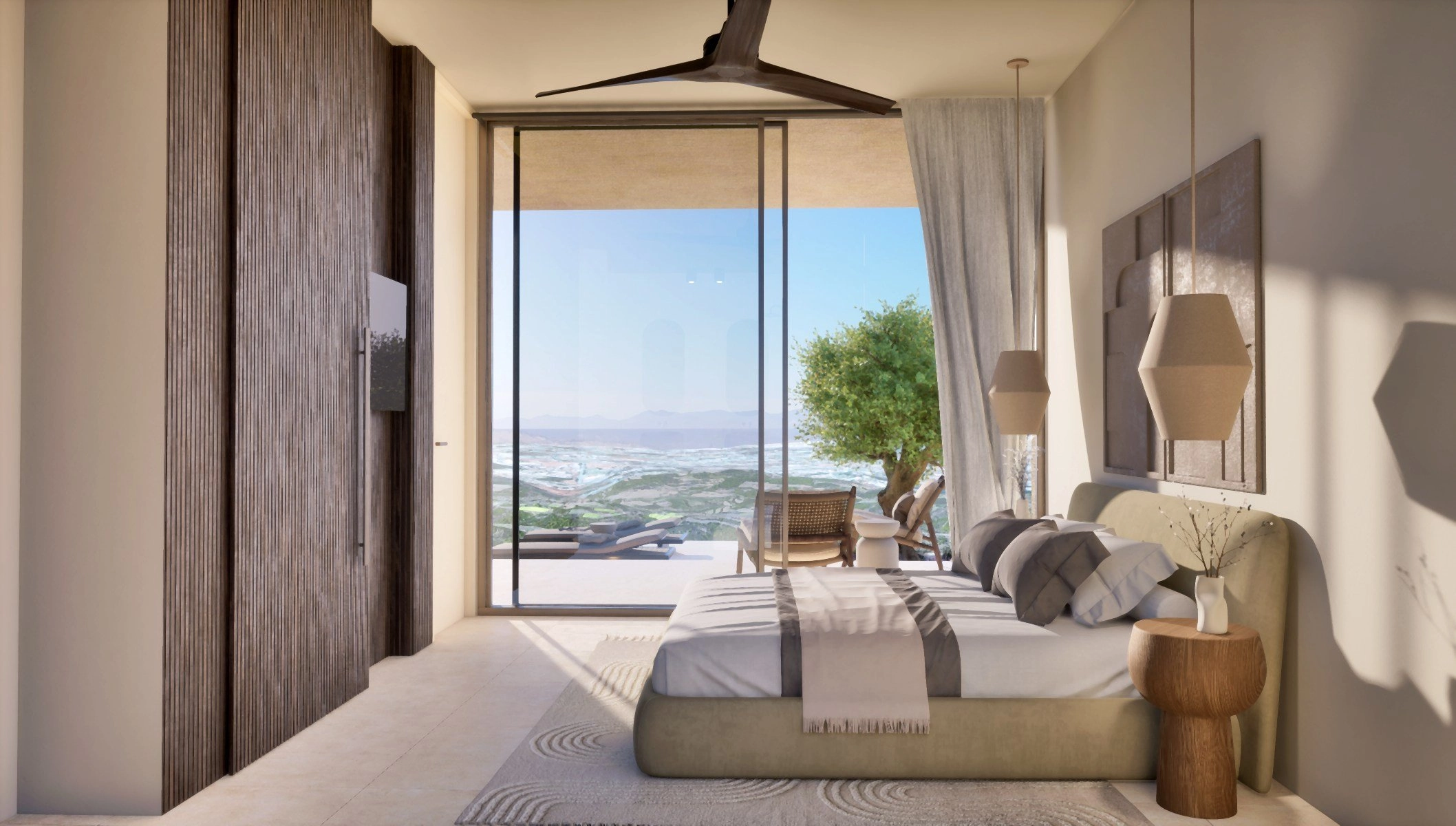 The masterplan introduces a carefully curated collection of residences, including contemporary apartments, elegant duplexes, single-level villas and expansive two-storey homes. Architecture follows a clear principle: reconnecting indoor spaces with the surrounding landscape. Open-plan interiors, generous terraces and floor-to-ceiling glazing frame the scenery as a living artwork, while natural materials and restrained detailing create a calm, refined atmosphere.