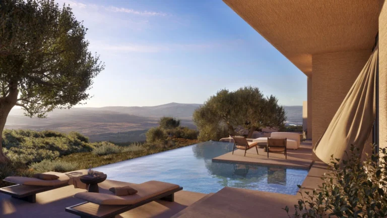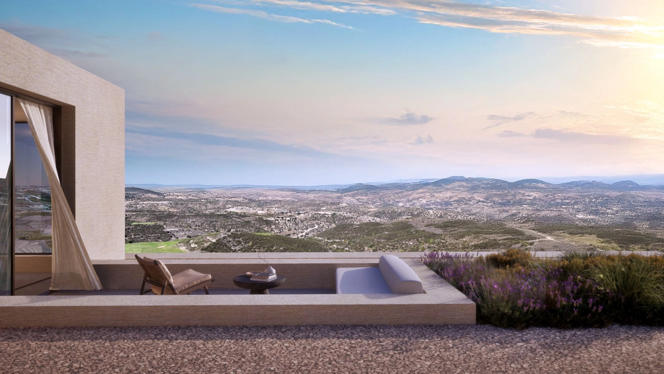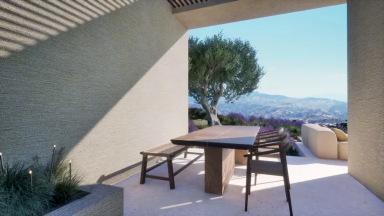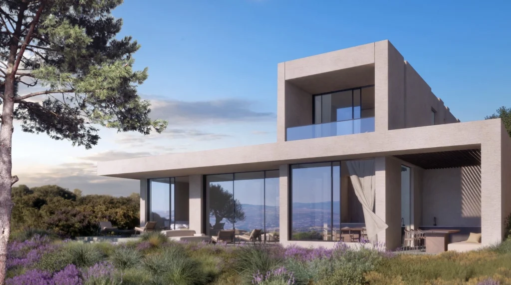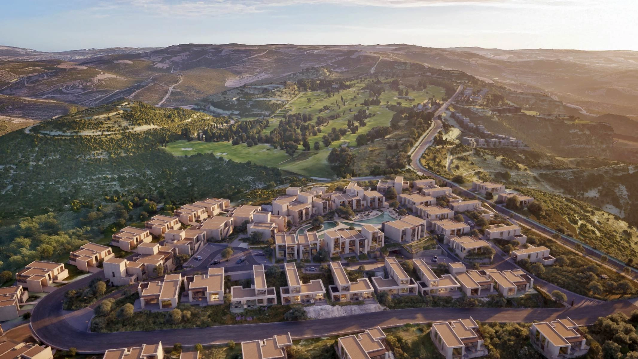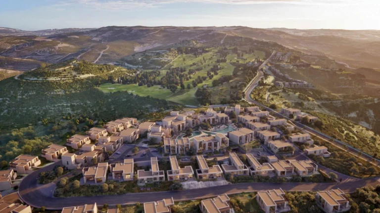 Set at the highest point of an award-winning hillside resort, this elevated neighbourhood captures a rare sense of stillness above Paphos. From here, uninterrupted panoramic views unfold in every direction — across rolling mountain landscapes, manicured golf greens and the Mediterranean horizon beyond.