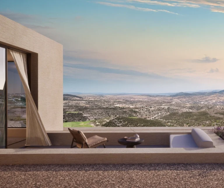 Set at the highest point of an award-winning hillside resort, this elevated neighbourhood captures a rare sense of stillness above Paphos. From here, uninterrupted panoramic views unfold in every direction — across rolling mountain landscapes, manicured golf greens and the Mediterranean horizon beyond.