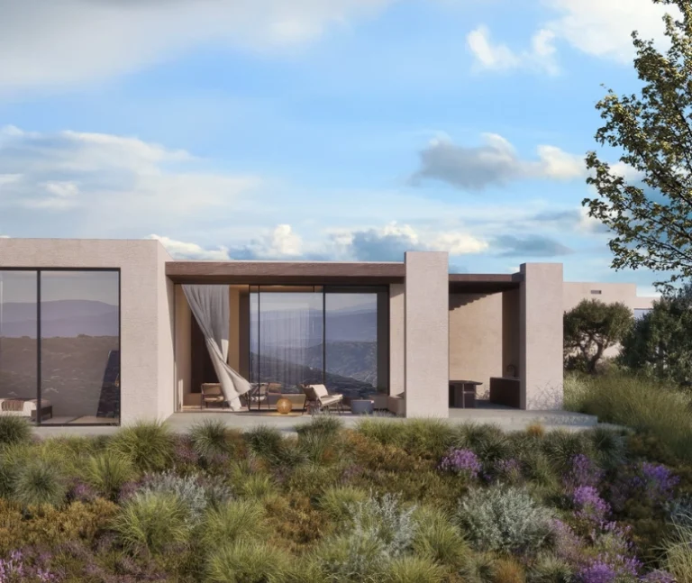 The masterplan introduces a carefully curated collection of residences, including contemporary apartments, elegant duplexes, single-level villas and expansive two-storey homes. Architecture follows a clear principle: reconnecting indoor spaces with the surrounding landscape. Open-plan interiors, generous terraces and floor-to-ceiling glazing frame the scenery as a living artwork, while natural materials and restrained detailing create a calm, refined atmosphere.