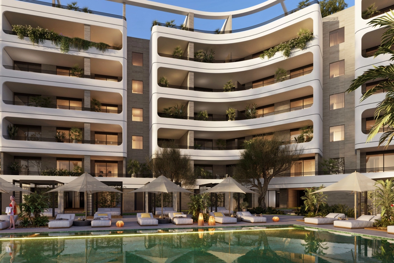 A stylish complex consisting of two blocks and forty eight apartments located in a beautiful tranquil area that offers serenity and luxury at its best. Upon entering the property you are simply taken away by its beautiful modern classic design combined with a contemporary luxurious twist. Unwind and relax in the living room or dining area and enjoy floor to ceiling windows that bring in natural light opening the space and giving that sense of freedom and spaciousness. Each apartment is carefully designed with functional living spaces and high standards of finish. These apartments also enjoy communal or private swimming pools and manicured private gardens where you can immerse and enjoy special moments with family and friends. Residents will have the privilege to enjoy a views of the Mediterranean Sea complemented with green landscapes surrounding the area. Here residences will have access to a Mediterranean resort at their doorsteps, from your personal well-being and fitness to recharging and revitalising, you will have it all.