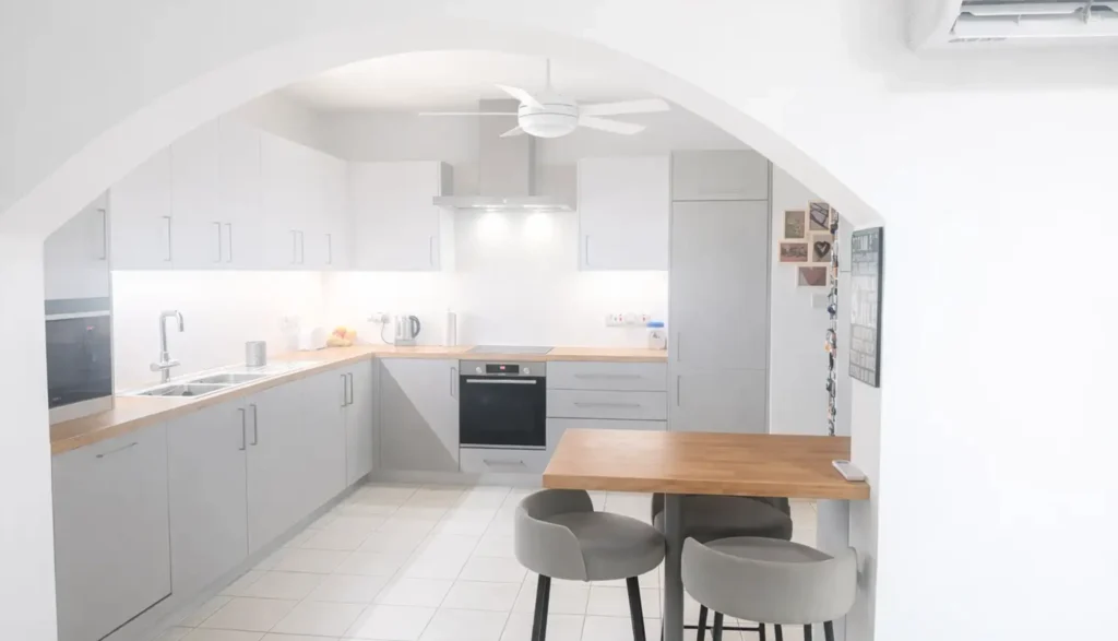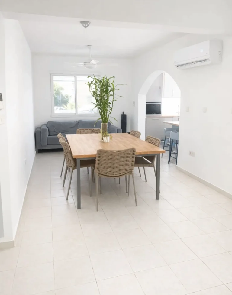 This fully furnished three-bedroom apartment is located on the first floor in Chlorakas, Paphos, offering 120 m² of internal space.