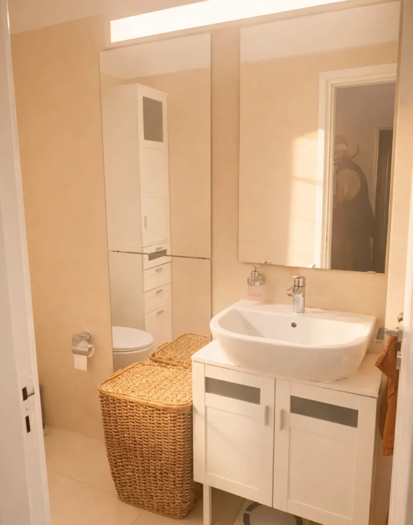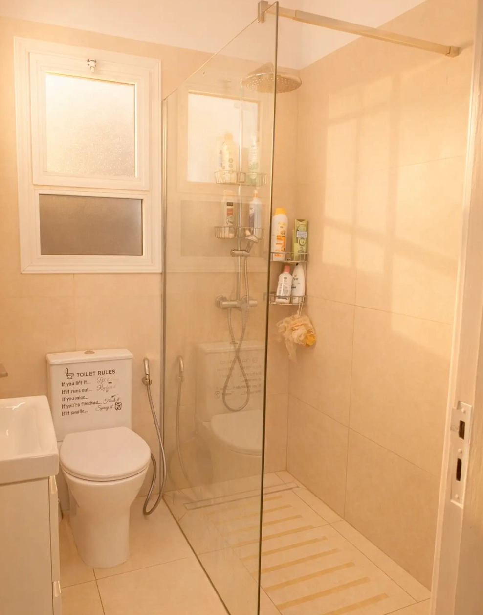 The property features two bathrooms, a spacious open-plan living and dining area, and a fully equipped kitchen. It includes a balcony, storage room, and access to a communal swimming pool. Recently renovated and in excellent condition, the apartment is ready for immediate occupancy or rental.