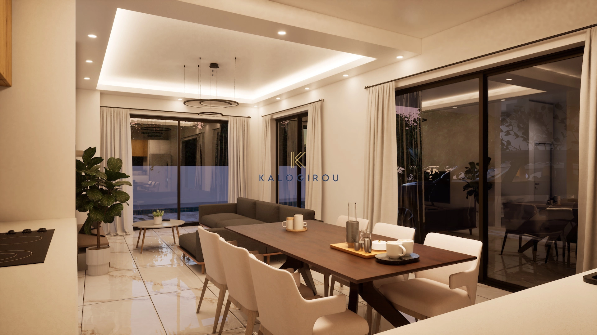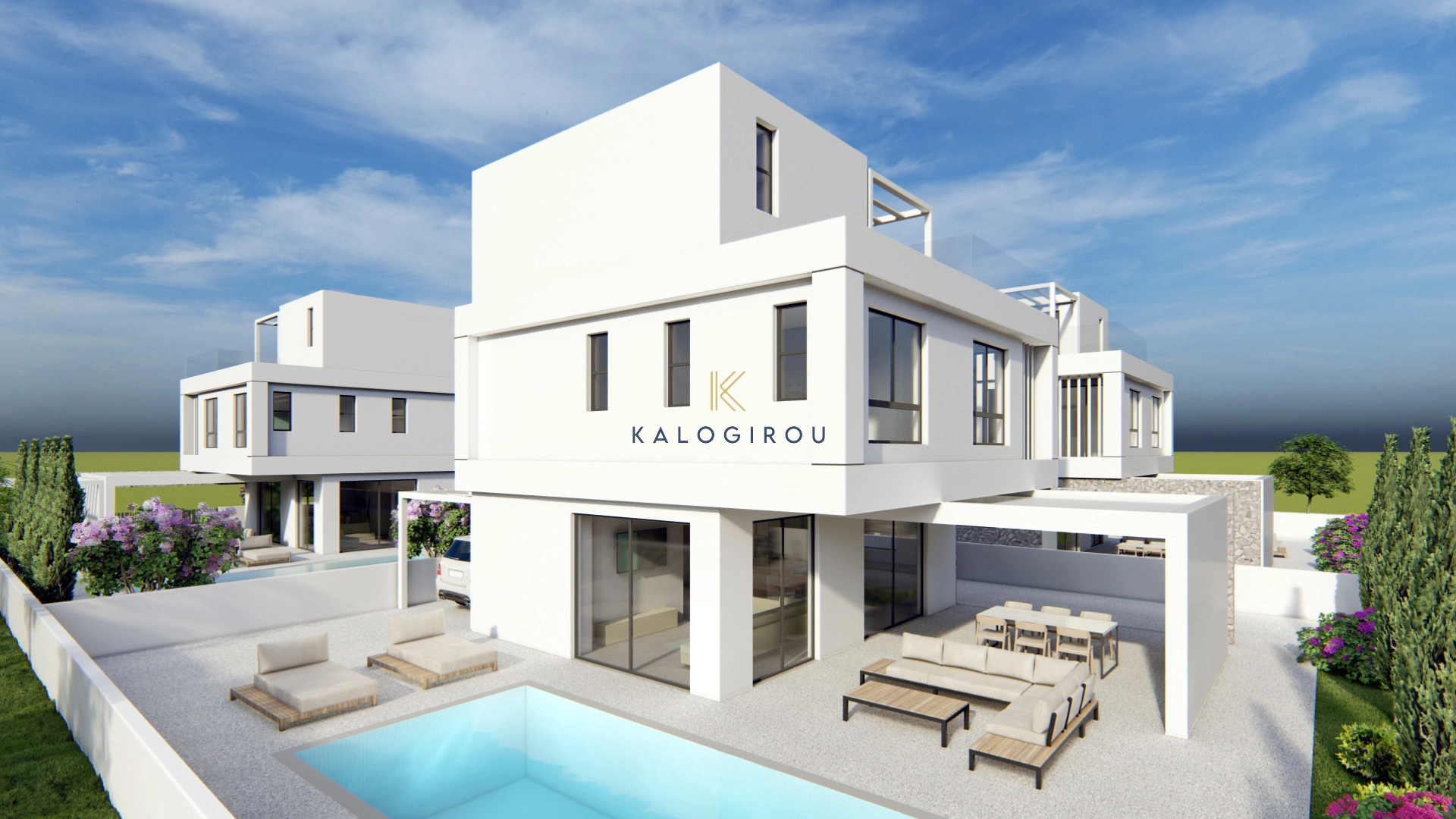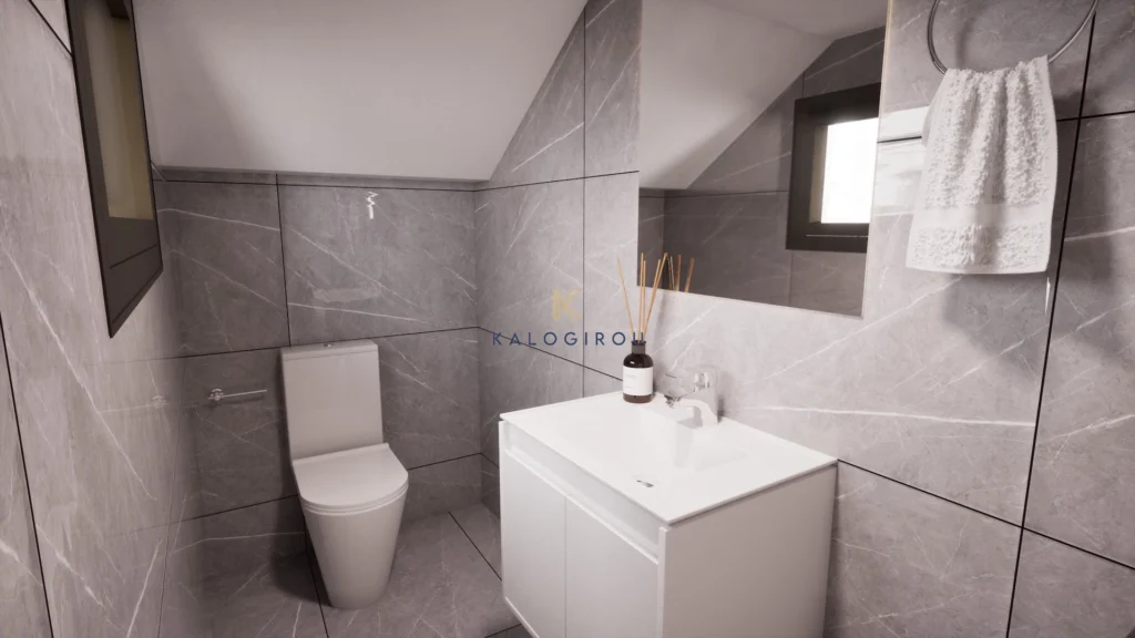 Villa for sale in Pernera area, Famagusta district. The ground floor consists of an open plan kitchen-living-dining area and guest wc. The first floor consists of 3 en suite bedrooms-one of them with veranda access. On the roof top there is a fourth bedroom, also en suite and a big uncovered veranda. Externally, on the ground floor the residence offers private swimming pool, covered veranda and uncovered parking.