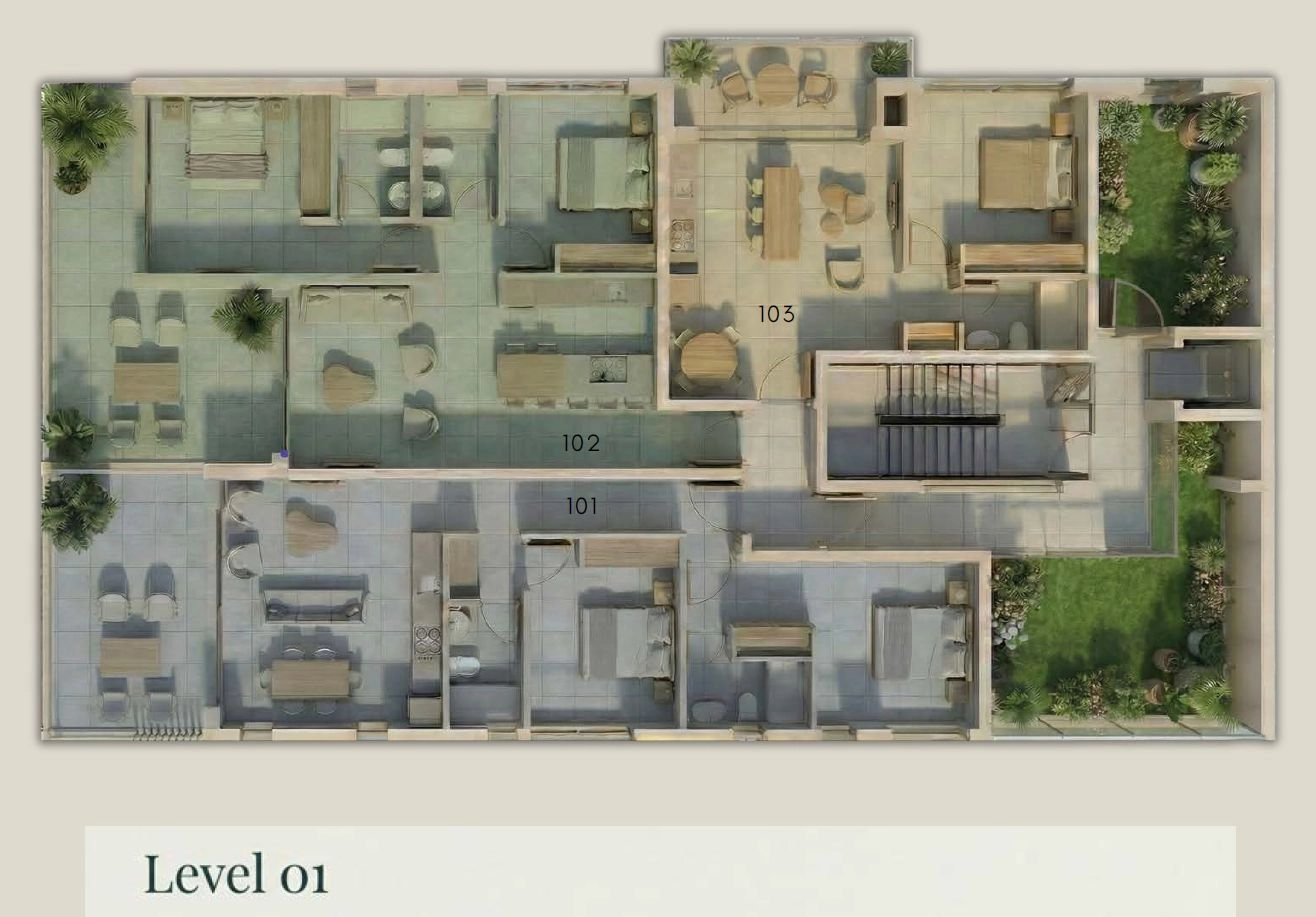 This is a sea-view boutique residential project set on the quiet hills of Geroskipou. Designed as a stepped building that follows the natural slope of the land, it offers privacy, light, and open views in every apartment.
