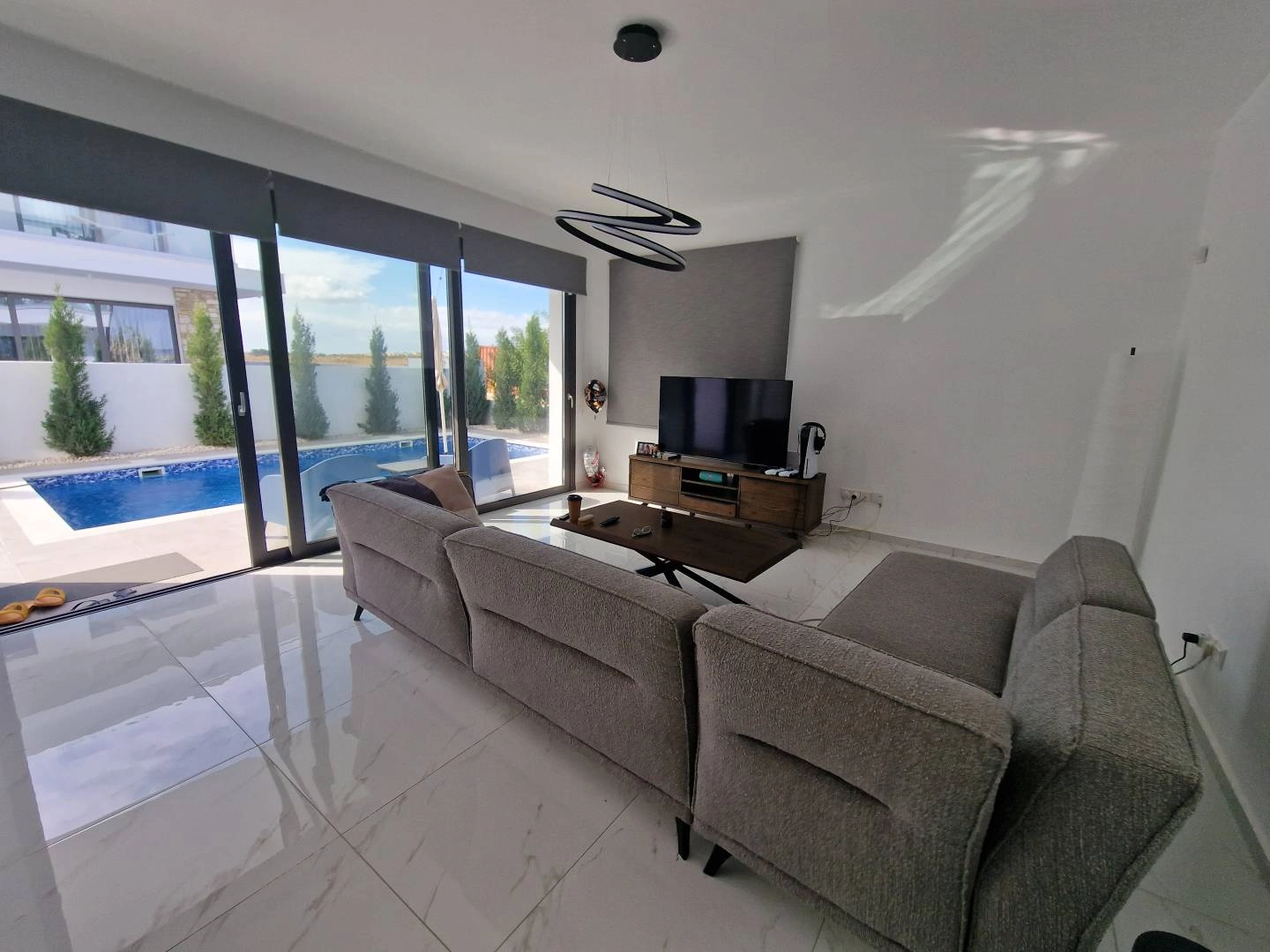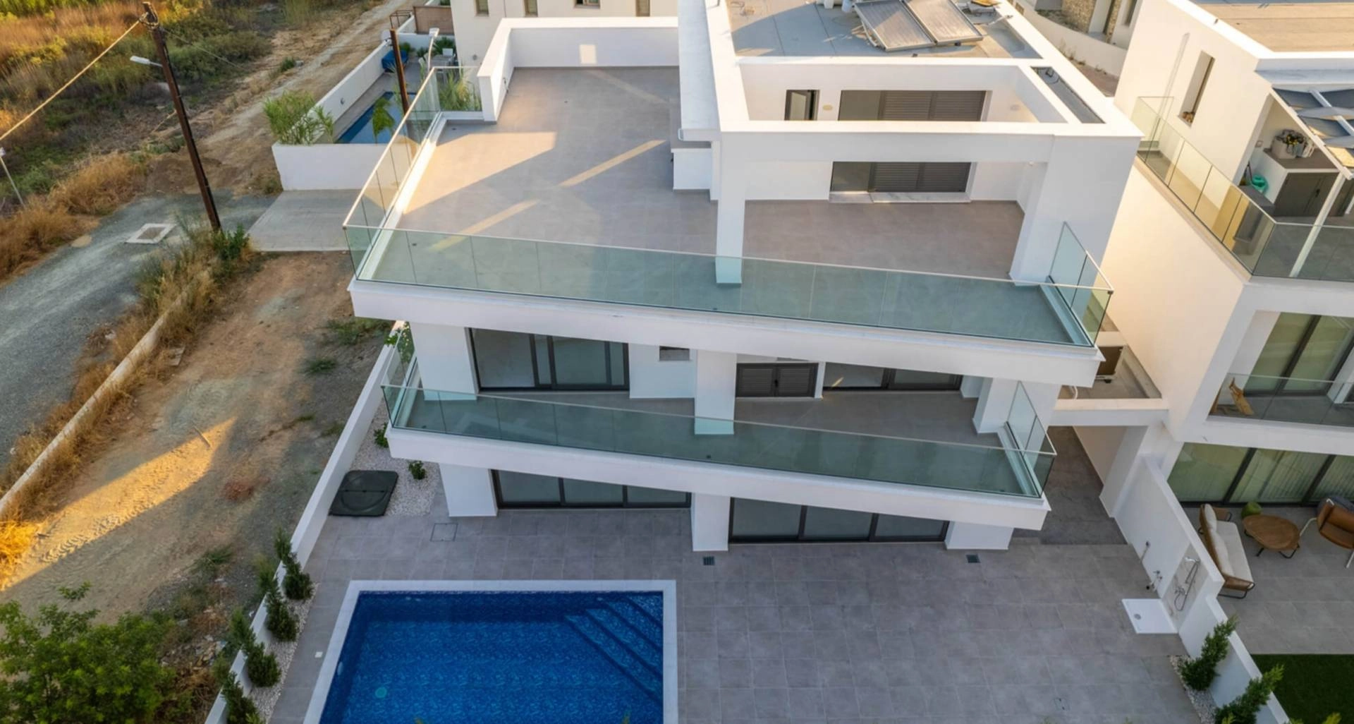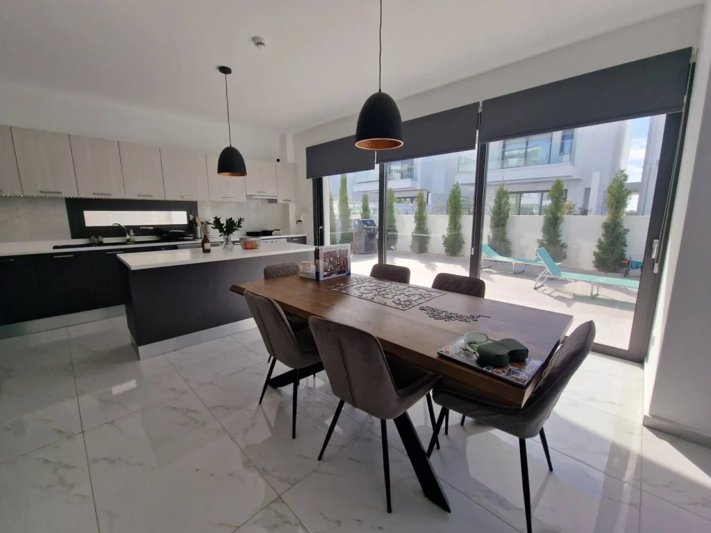 A modern villa for sale, built using high-quality building materials. Double glazed windows keep you warm in winter and cool in summer. Underfloor heating is installed throughout the house. Fully equipped bathrooms, closets, kitchen. The house has a huge roof terrace with panoramic views and a separate room that can be used as an additional bedroom, office or gym. Garage for two parking spaces, outdoor shower, barbecue area. Cameras and motion sensors are installed. The house is located at the end of a residential complex, a quiet area. Next to the house there is a lawn of 40 m2, which can be accessed through the gate. The owners of the house are allowed to grow plants and trees, creating for themselves a beautiful garden overlooking the lush green hills. It is 5 minutes to the center of Larnaca, 3 minutes to supermarkets and 10 minutes to the Metropolis Mall.