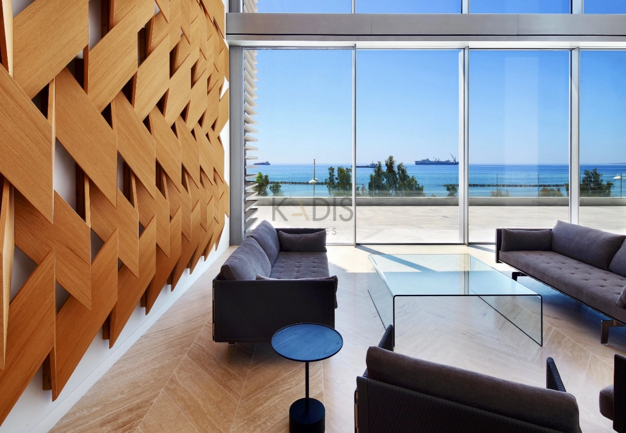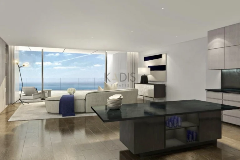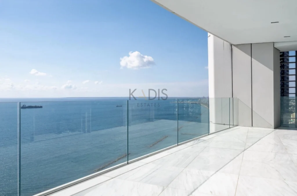 An exceptional high-floor residence in the tallest coastal tower in Cyprus, offering unobstructed 360° views of the sea, city and mountains. Located on the 21st floor, this apartment combines elegant design, comfort and prime beachfront living just 50 meters from the sea.