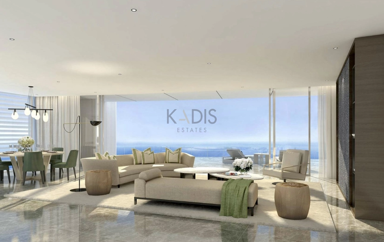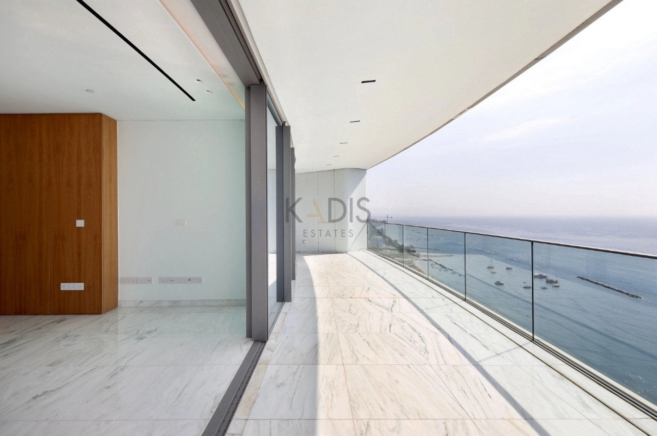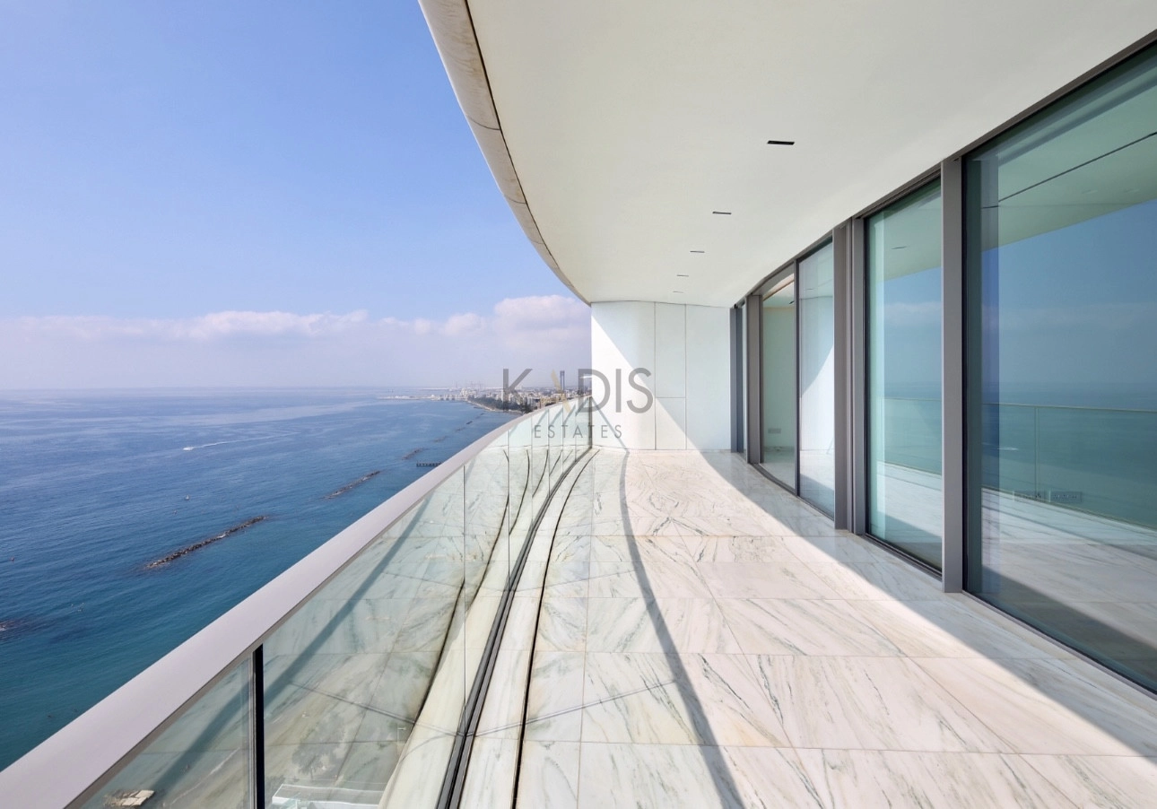 An exceptional high-floor residence in the tallest coastal tower in Cyprus, offering unobstructed 360° views of the sea, city and mountains. Located on the 17th floor, this apartment combines elegant design, comfort and prime beachfront living just 50 meters from the sea.