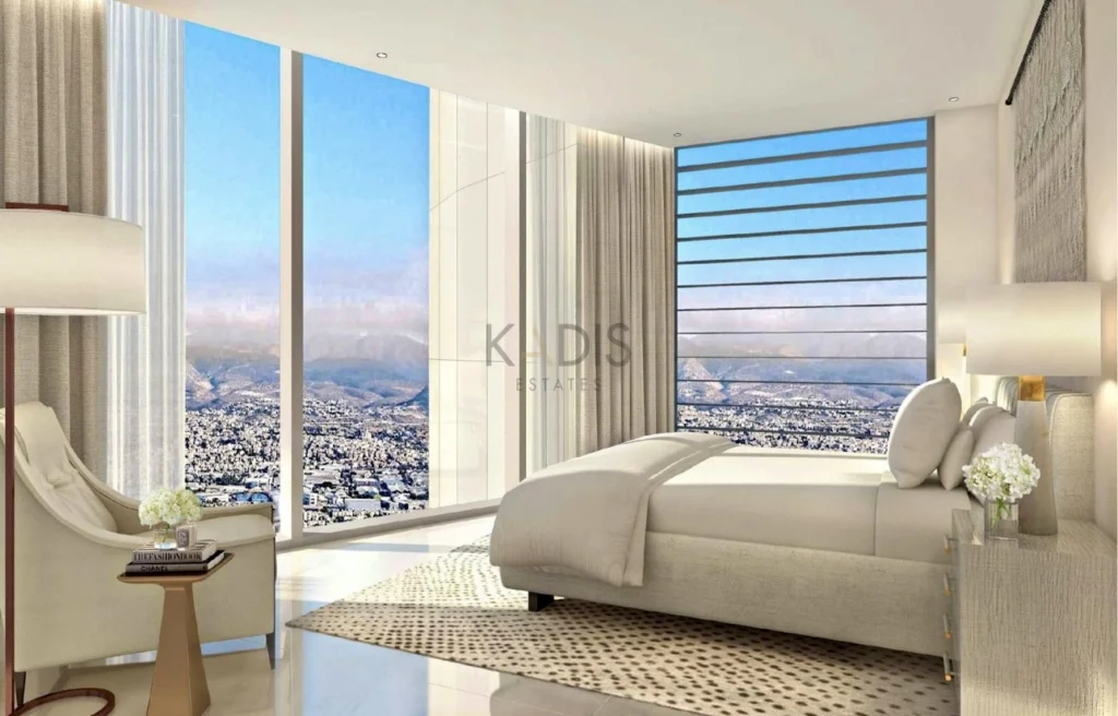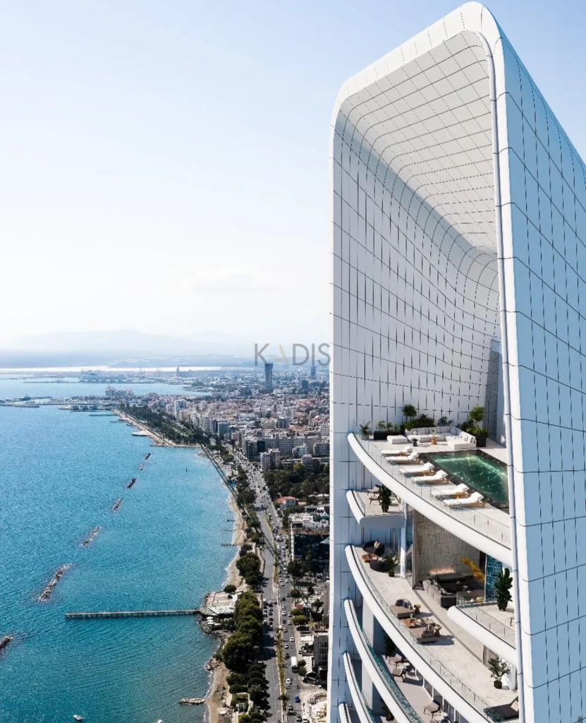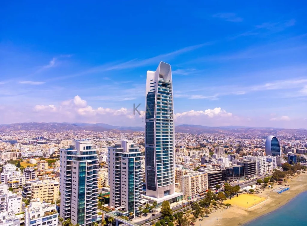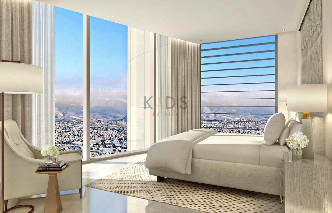 An exceptional high-floor residence in the tallest coastal tower in Cyprus, offering unobstructed 360° views of the sea, city and mountains. Located on the 17th floor, this apartment combines elegant design, comfort and prime beachfront living just 50 meters from the sea.