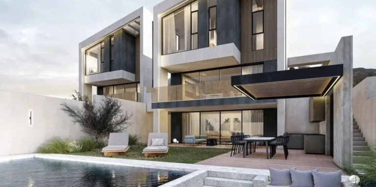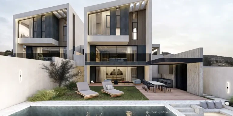 Each property’s ground floor features welcoming reception areas, modern kitchens, guest WC, and cozy covered terraces for outdoor entertaining. The first floor hosts spacious bedrooms with built-in wardrobes, some with en-suite facilities. Furthermore, each residence includes inviting swimming pools with relaxation areas, landscaped gardens, and covered parking area, adding convenience to the luxurious lifestyle offered by this exceptional Limassol property. This project is created for discerning families seeking a sophisticated living experience.