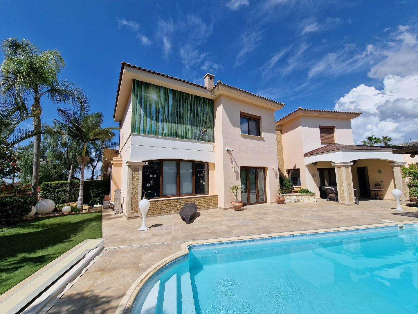 Luxury 5 bedroom villa for sale, located on the hills of one of the most prestigious areas of Mesovounia, overlooking the city of Limassol and the sea. Private heated pool with electric cover. Interior finish with Venetian plaster and exterior finish with grafiato and natural stone. There are electric entrance gates; PVC windows with electric blinds; VRV air conditioners; Central floor heating; Parquet; Smart home system; Handmade wooden kitchen, cabinets and doors; TVs, DVDS, CD changer, DVD recorder, wifi; centralized sound system; satellite dish; Electrical appliances Gaggenau; Furniture (partially), lamps, curtains; Security alarm; CCTV (cameras); Barbecue area with external TV projector.