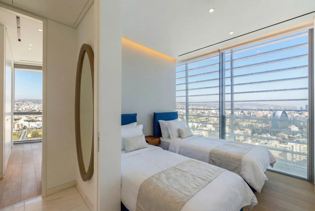 This exceptional three-bedroom residence in One Tower Limassol is defined by expansive, light-filled living areas framed by floor-to-ceiling glazing and uninterrupted panoramic sea views. The open-plan layout creates a seamless flow between the elegant lounge, dining space, and contemporary kitchen, offering both sophistication and comfort for everyday living and entertaining. Generously proportioned bedrooms provide privacy and tranquility, with refined finishes and carefully curated materials enhancing the sense of understated luxury throughout. Every detail reflects quality, from the premium specifications to the seamless indoor-outdoor connection that captures the Mediterranean horizon. Residents enjoy access to world-class amenities, including 24-hour concierge and security, a heated swimming pool, state-of-the-art gym, spa facilities with sauna and steam room, landscaped relaxation areas, and secure underground parking. Positioned directly on the seafront, the tower offers immediate access to the promenade and the vibrant city lifestyle. This property is not simply an apartment — it is a statement address.