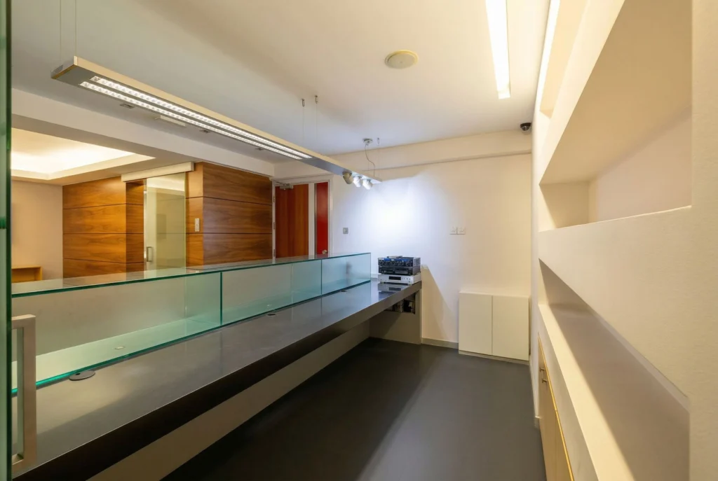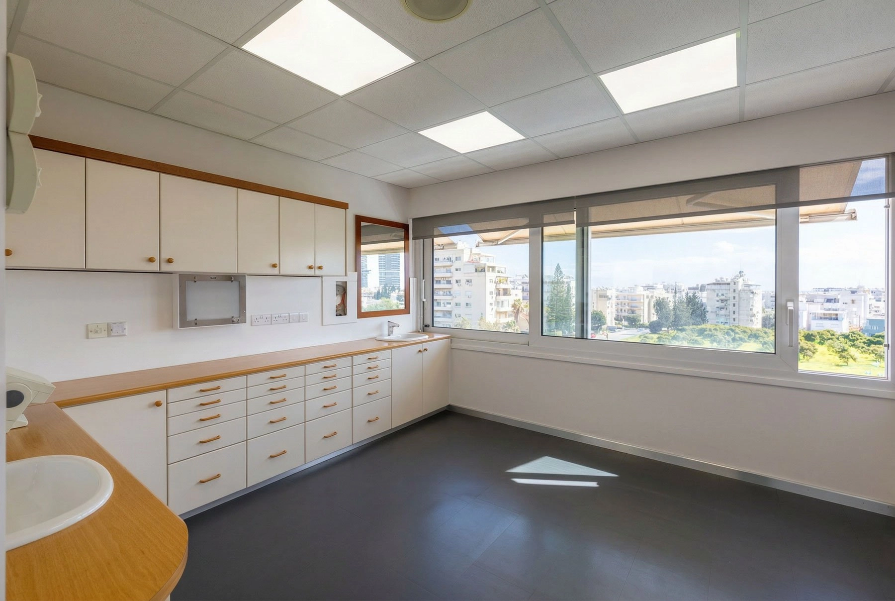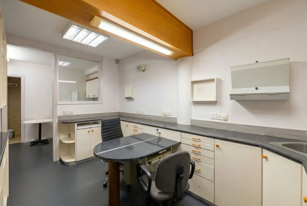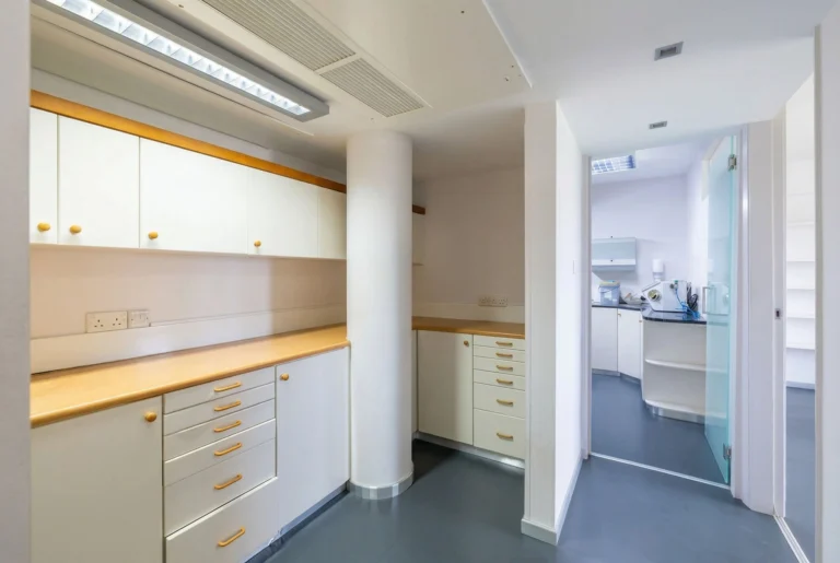 Located on one of Limassol’s busiest residential and commercial roads, this well-maintained third-floor office offers excellent visibility and accessibility in a high-traffic area surrounded by coffee shops, retail stores, schools, clinics, and numerous everyday amenities. The constant pedestrian and vehicle flow makes it an ideal choice for any client-oriented business. Previously operating as a dental practice, the office is thoughtfully configured and easily adaptable for various professional uses. It comprises a welcoming reception area with seating space, a guest toilet, a separate office kitchen, and three independent unit rooms that can function as private offices, consultation rooms, or treatment spaces, as well as an additional room that could be used as a server room, storage space, or cleaning and preparation area. The property is in very good condition and features existing underfloor piping infrastructure, allowing convenient remodeling according to the new owner’s needs and concept. Bright and airy, the office also benefits from pleasant city views, creating a comfortable working environment for staff and visitors alike. Its strategic location and flexible layout make it perfectly suited for doctors, medical practitioners, therapists, wellness studios, beauty or aesthetic clinics, or other professional services seeking a prime Limassol address.