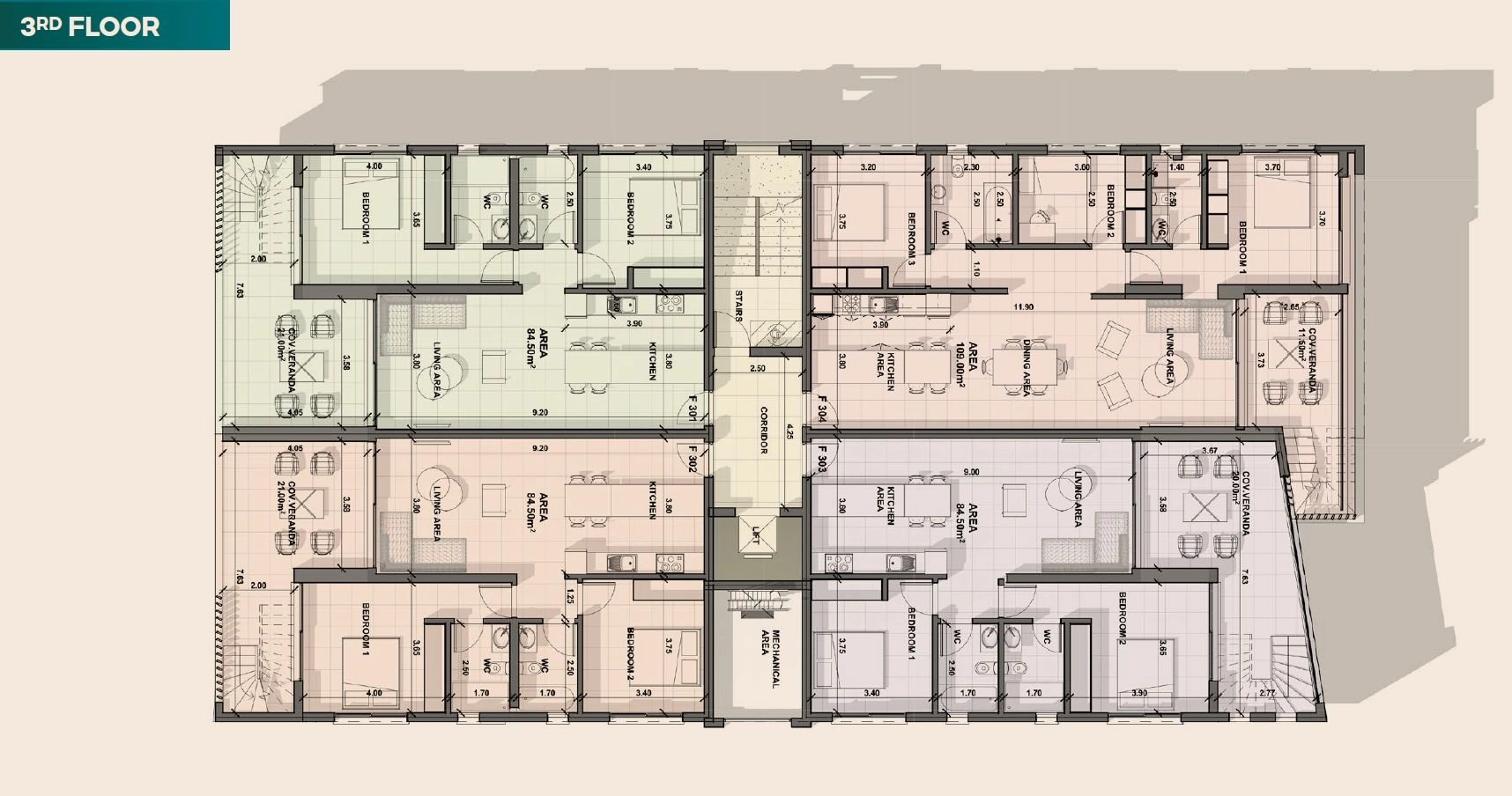 • Internal Area: 109 m²
