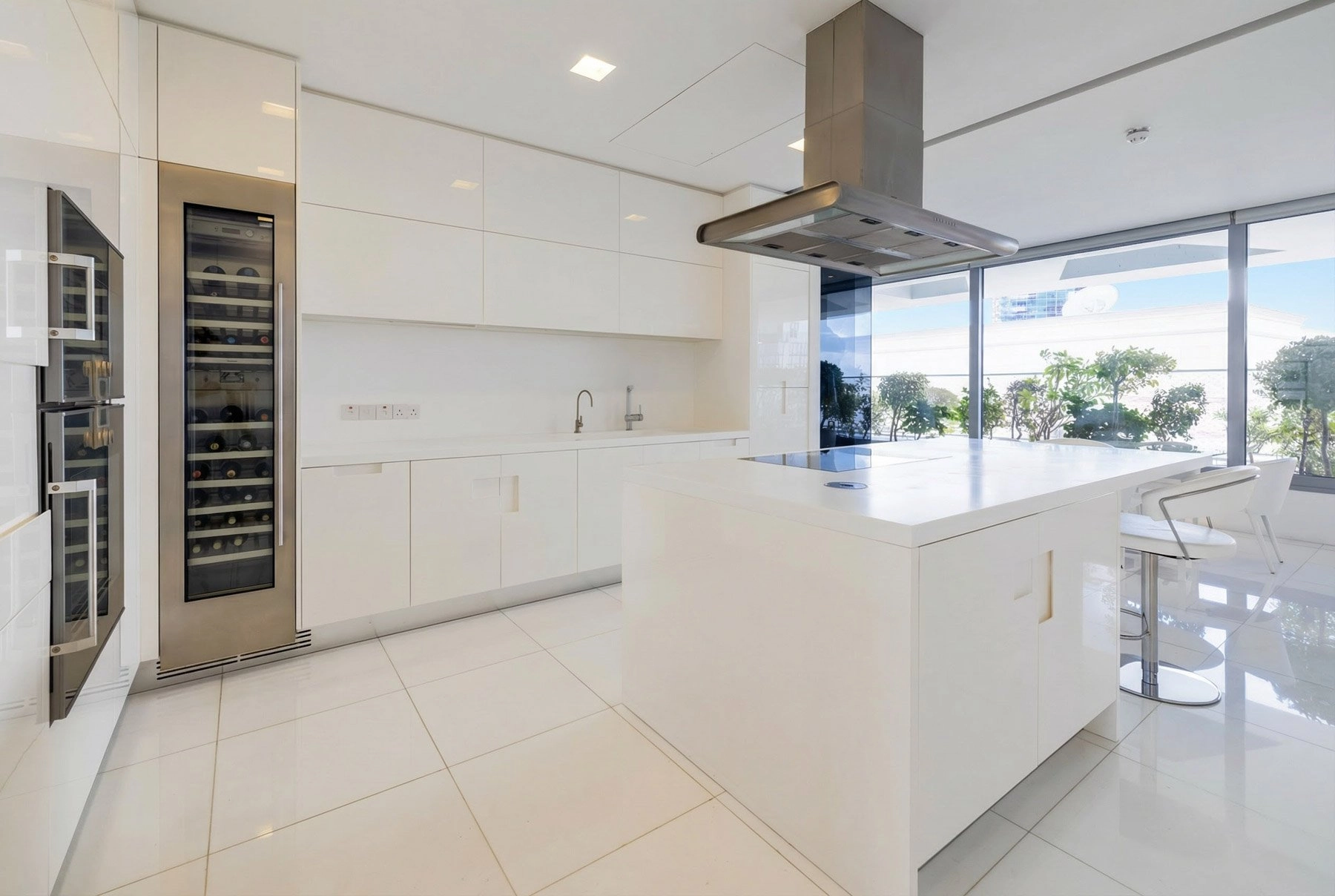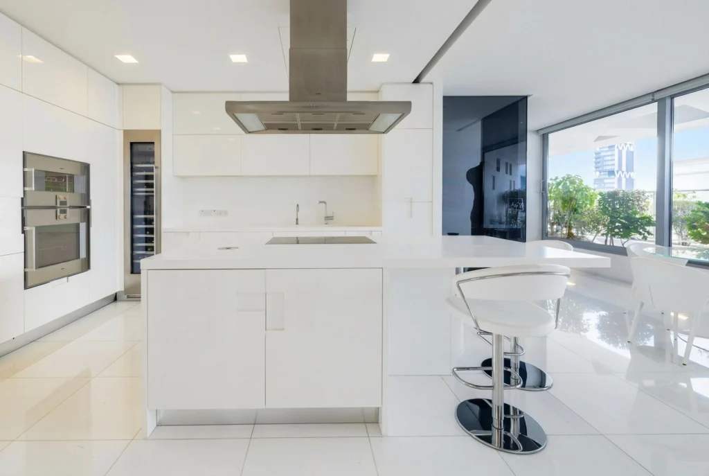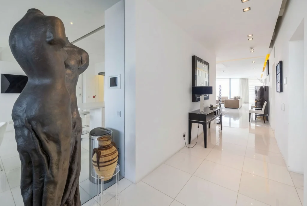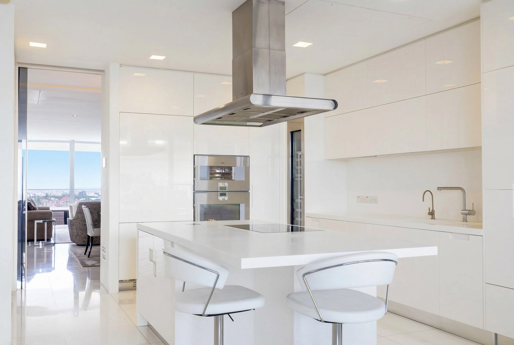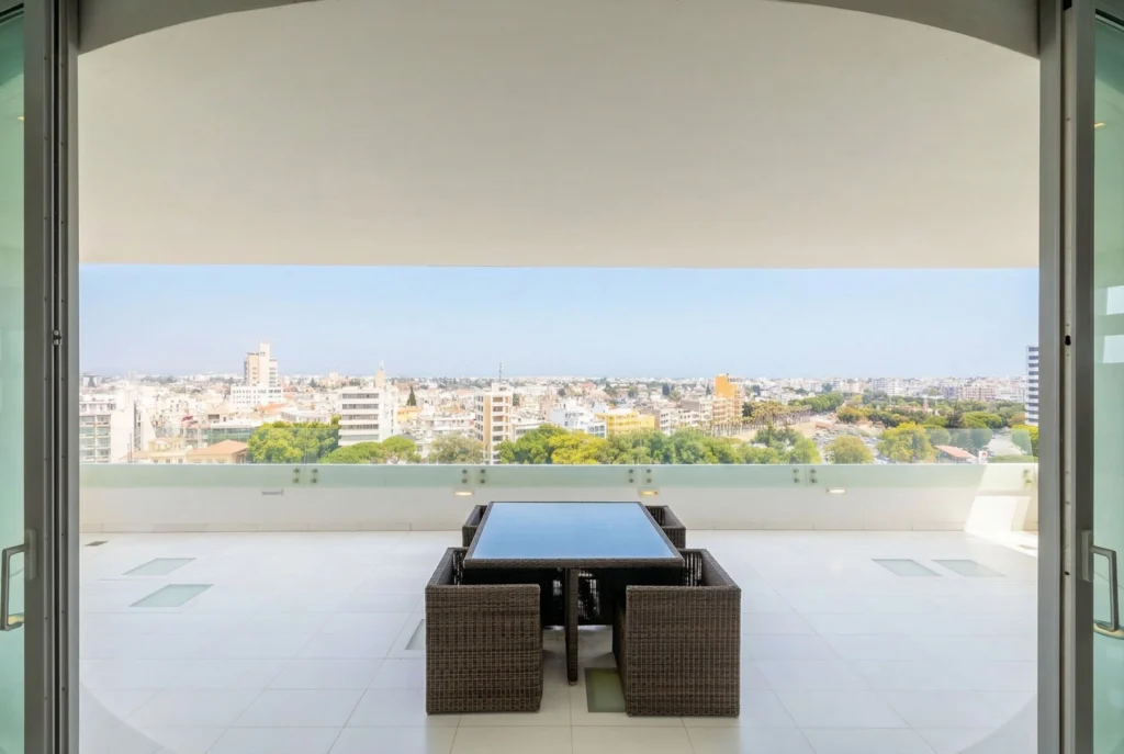 Floor-to-ceiling windows capture breathtaking panoramic views across Nicosia, filling the interiors with abundant natural light and creating an elegant atmosphere ideal for everyday living as well as entertaining guests.