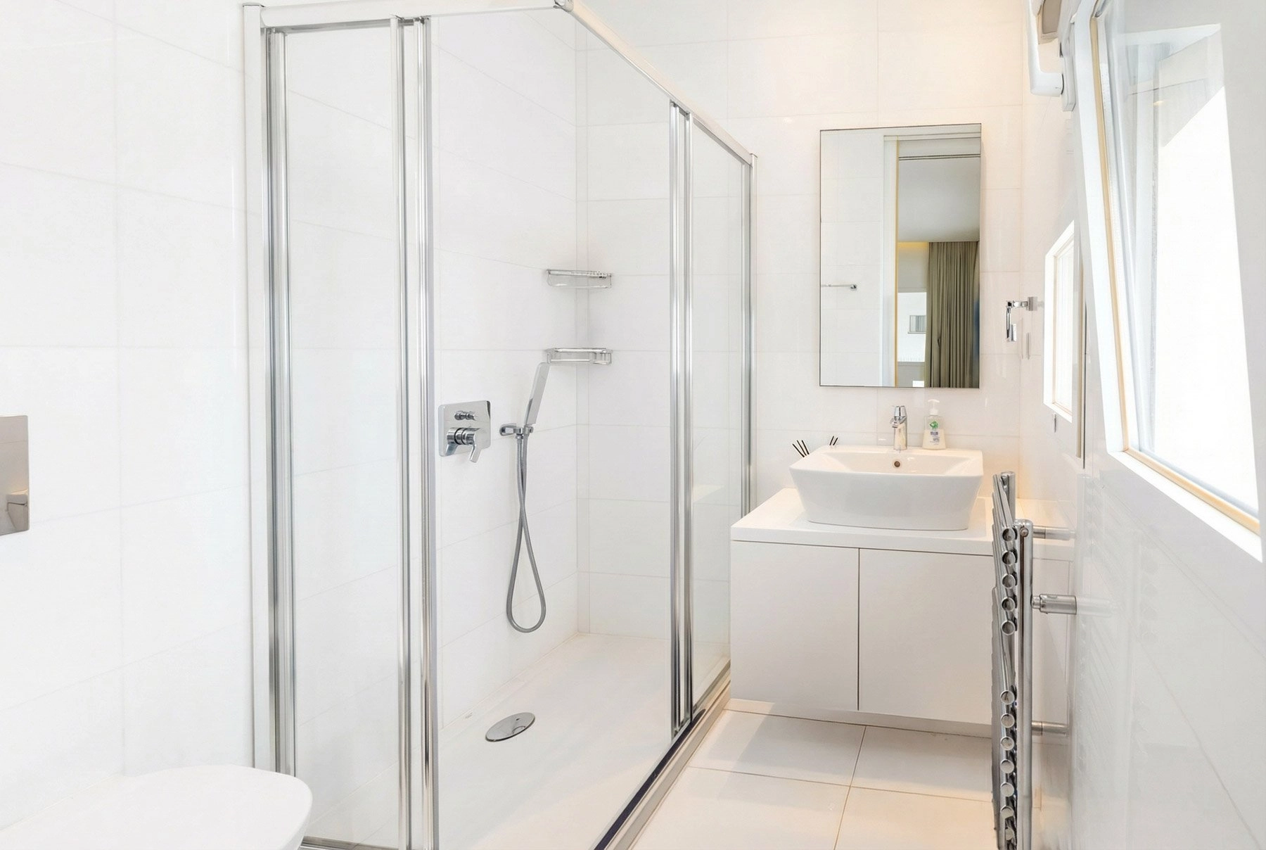 The apartment is offered unfurnished and includes three covered parking spaces and a private storage room. Additional features include a separate laundry room, underfloor heating, and air-conditioning units throughout, ensuring comfort in every season.