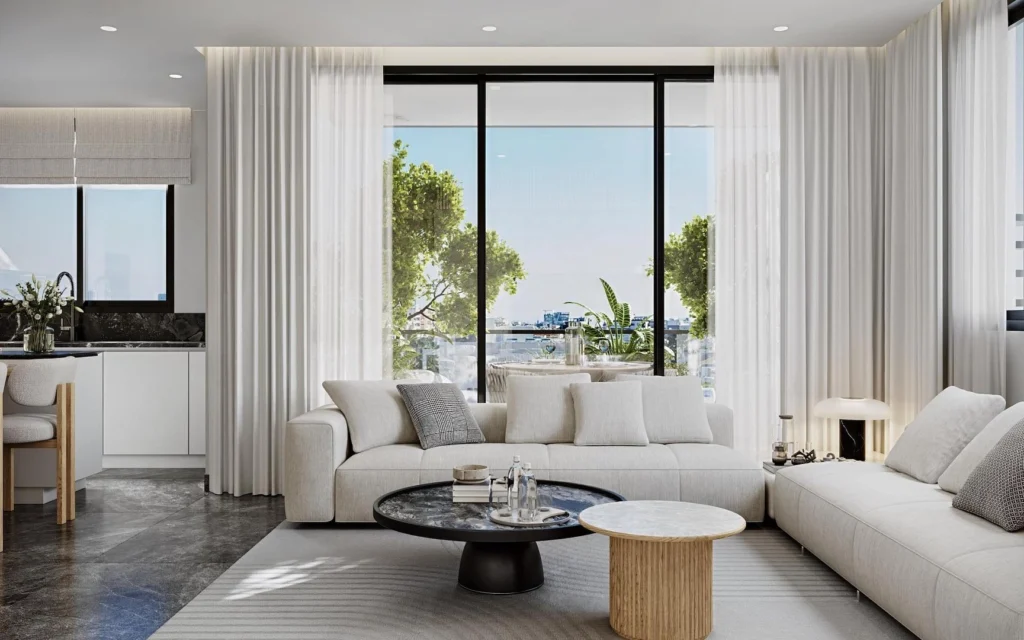 The Penthouse features a functional open-plan living and dining area connected to a modern kitchen, creating a bright and welcoming interior space. Large windows and spacious verandas enhance the sense of openness while allowing natural light to fill the apartment. Two well-proportioned bedrooms and modern bathrooms are complemented by high-quality finishing materials that ensure durability and elegance.
