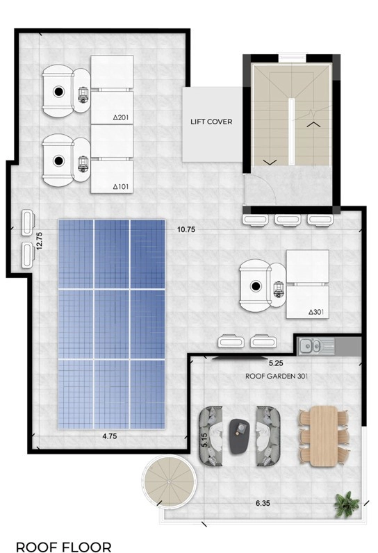 The apartment is built with a strong focus on comfort and sustainability. Modern engineering systems include electric underfloor heating in the living area, air conditioning, electric shutters in the bedrooms, and a video door entry system. Each apartment also benefits from covered parking and a private storage room, while photovoltaic panels and advanced insulation contribute to excellent energy efficiency.
