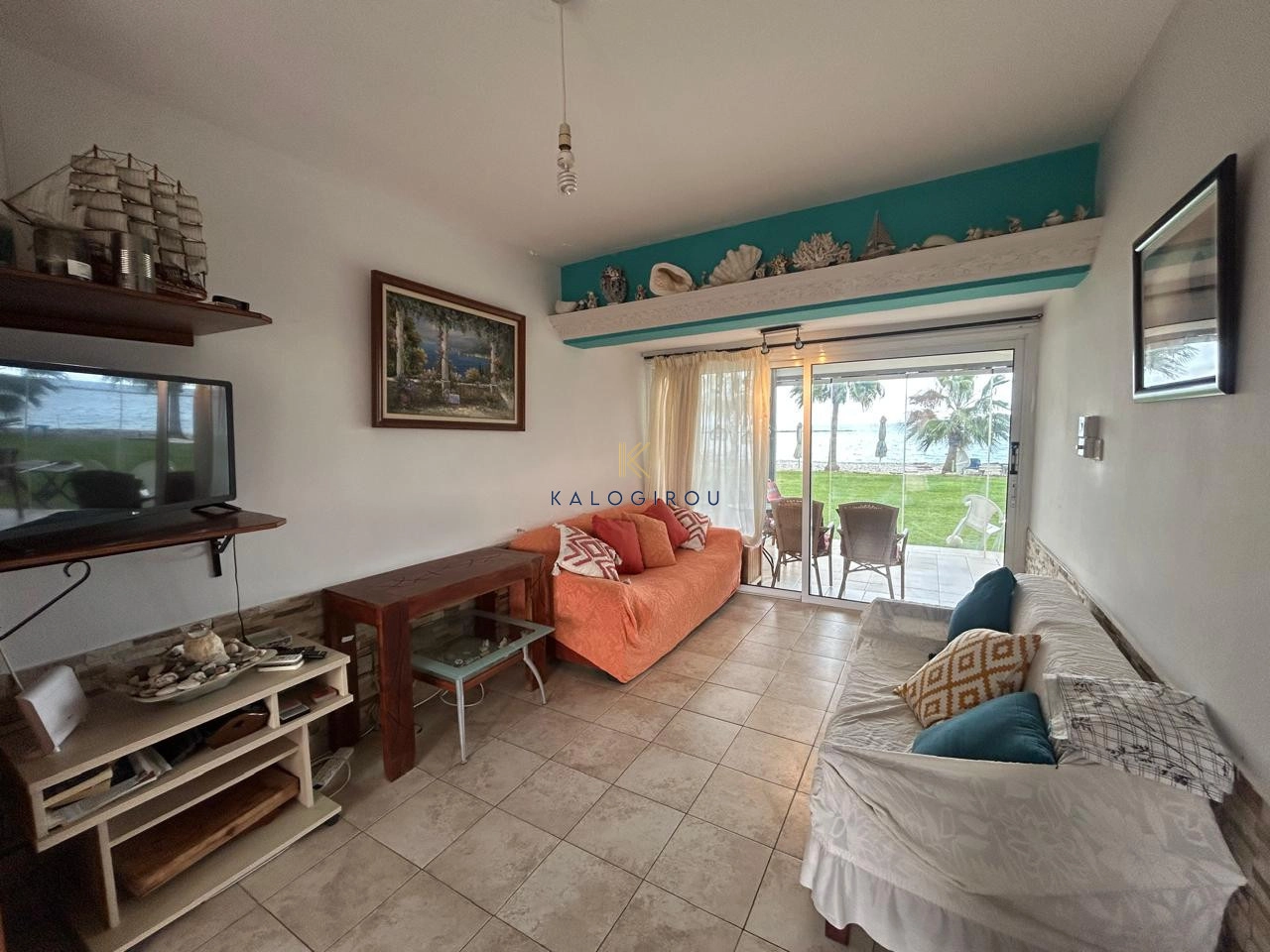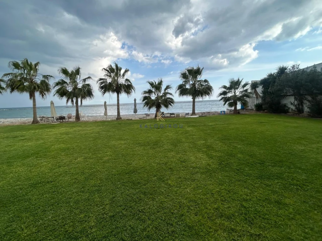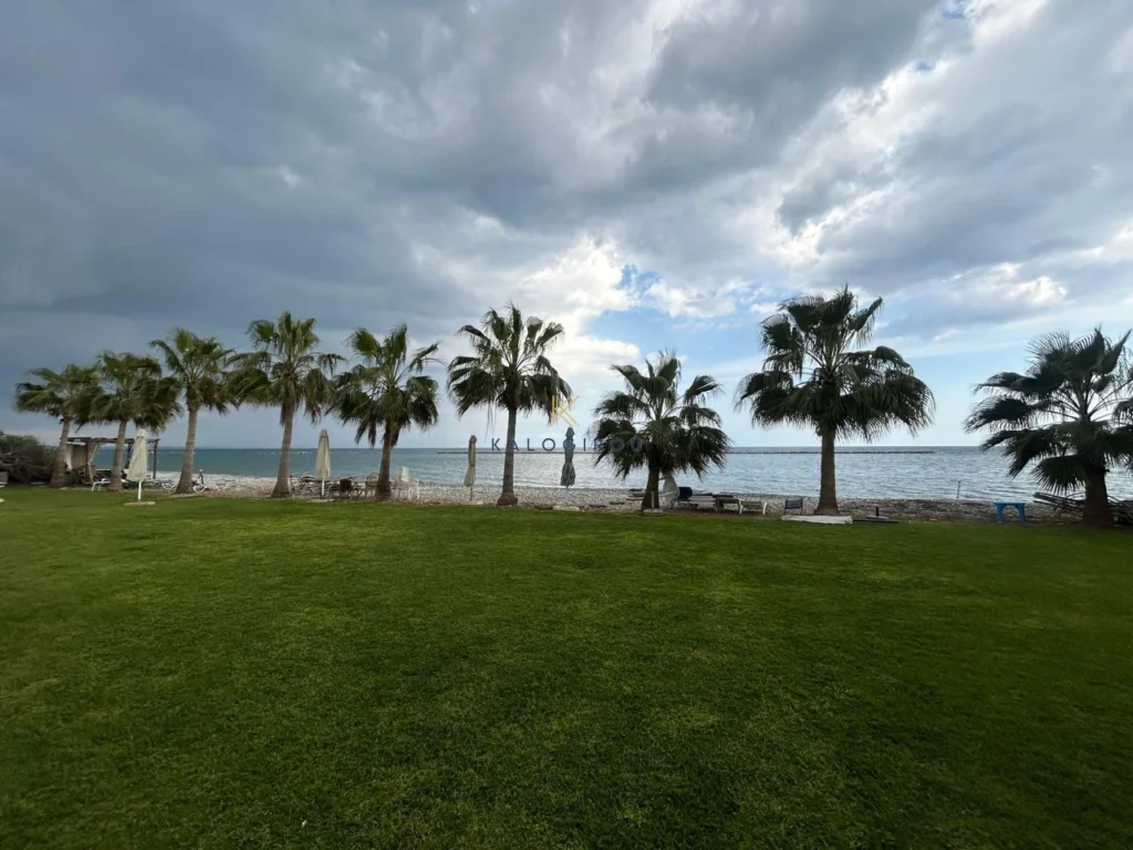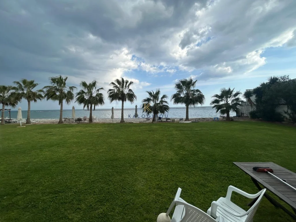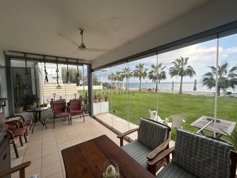 Beach-Front 2 Bedroom Apartment for sale in Oroklini, Larnaca. The property is fully furnished and consists of an open plan kitchen, living and dining area, two bedrooms, and one main bathroom with w.c and shower. The property has a covered Balcony on the ground floor with through access straight to the beach. Must be noticed the apartment is locatated in the ground floor of a two double storey building.