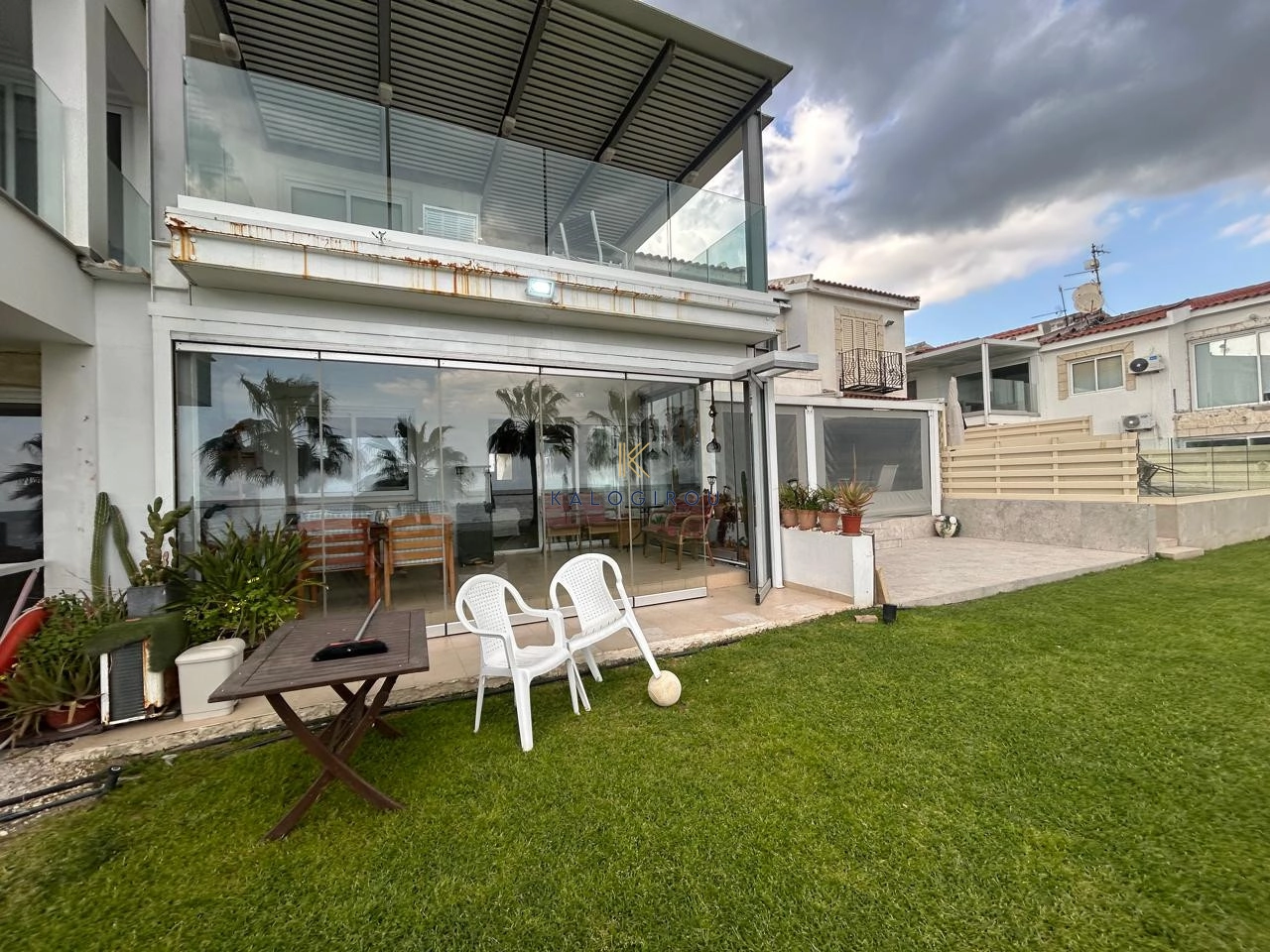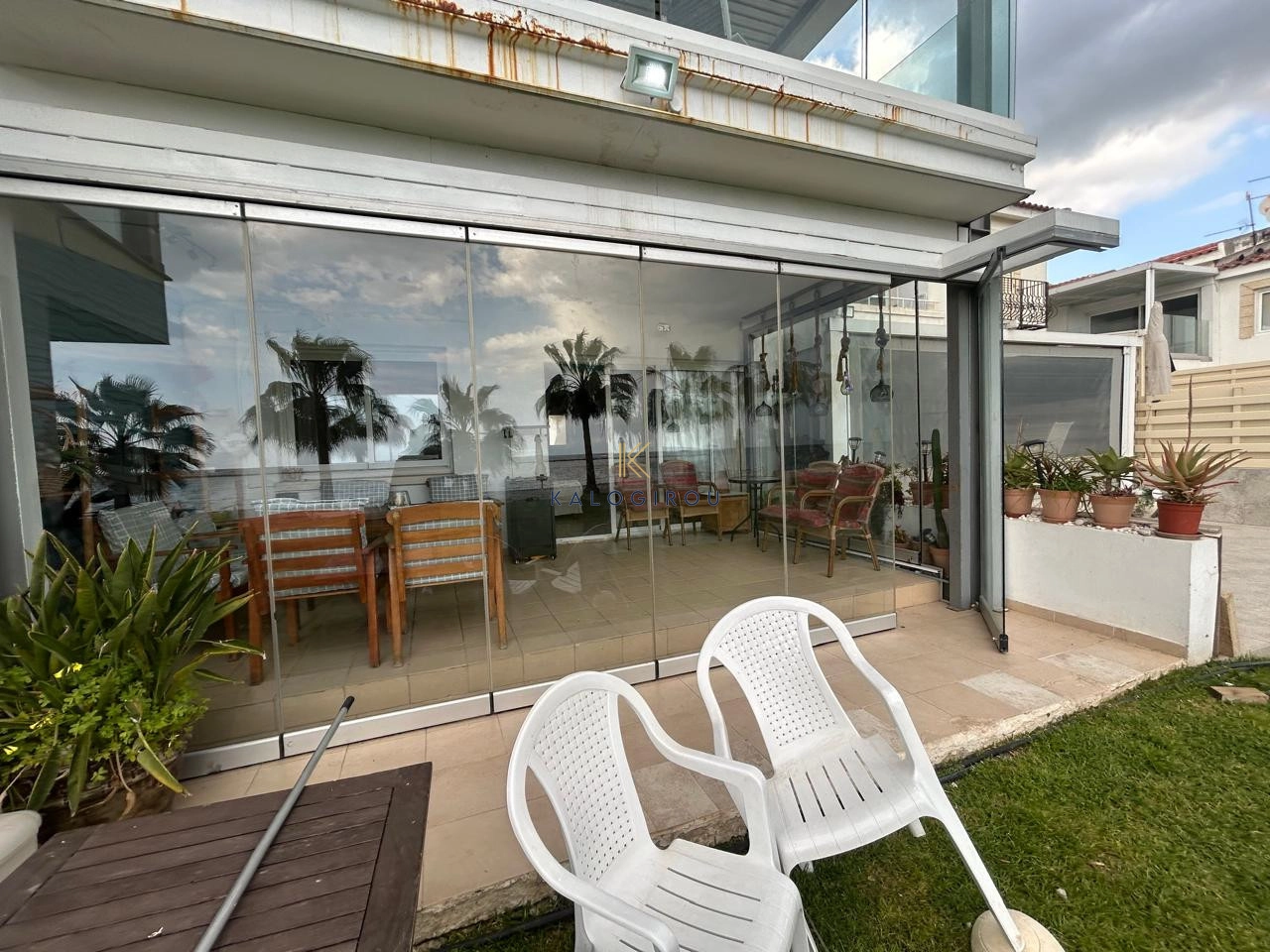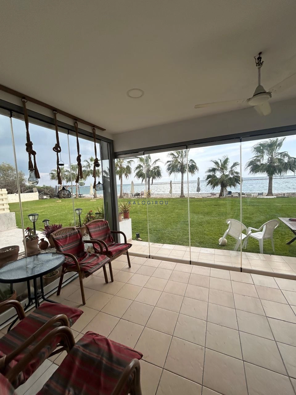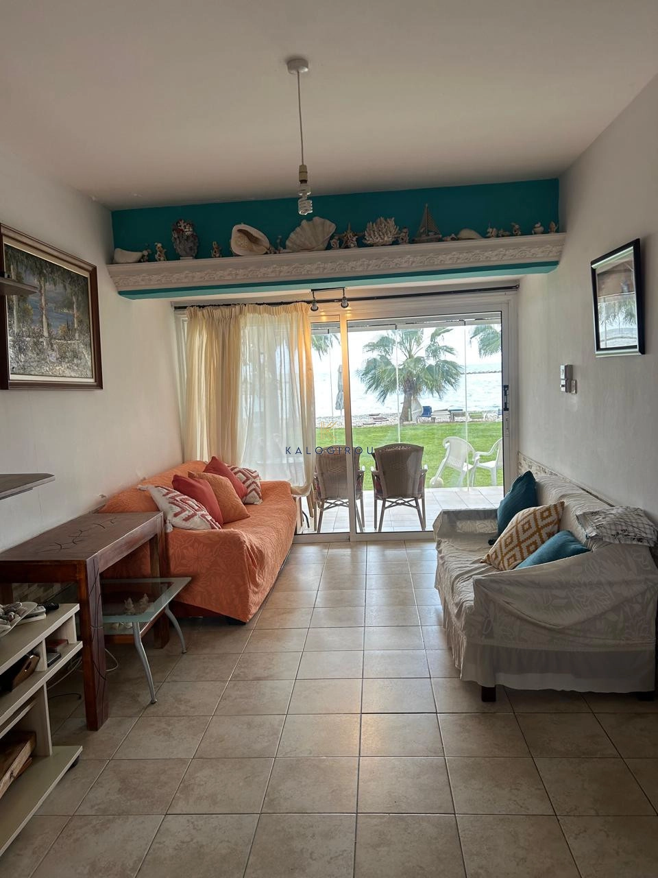 Beach-Front 2 Bedroom Apartment for sale in Oroklini, Larnaca. The property is fully furnished and consists of an open plan kitchen, living and dining area, two bedrooms, and one main bathroom with w.c and shower. The property has a covered Balcony on the ground floor with through access straight to the beach. Must be noticed the apartment is locatated in the ground floor of a two double storey building.