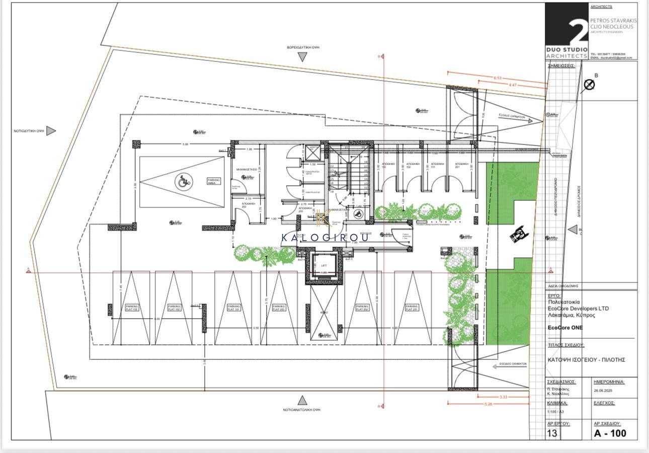 The apartment is part of a modern boutique residential development consisting of six two-bedroom apartments arranged over two floors, with three apartments on each floor. The ground floor includes covered parking spaces, private storage rooms, a reception area, and disabled access (PWD). Each apartment includes a large covered veranda, two bathrooms, laundry area, and an installed 1.7kW photovoltaic system. The building features modern architecture, high ceilings, provisions for air conditioning, photovoltaic panels for common areas, and high-quality energy-efficient construction materials designed according to current seismic and building regulations.