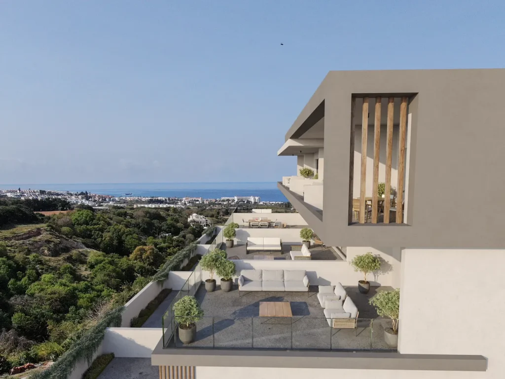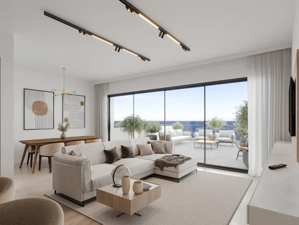 This spacious 2-bedroom apartment (95 m²) features an impressive 41 m² panoramic veranda with unobstructed views of the Mediterranean Sea and scenic canyon landscape — the perfect place to enjoy spectacular sunsets and relaxed Mediterranean living.