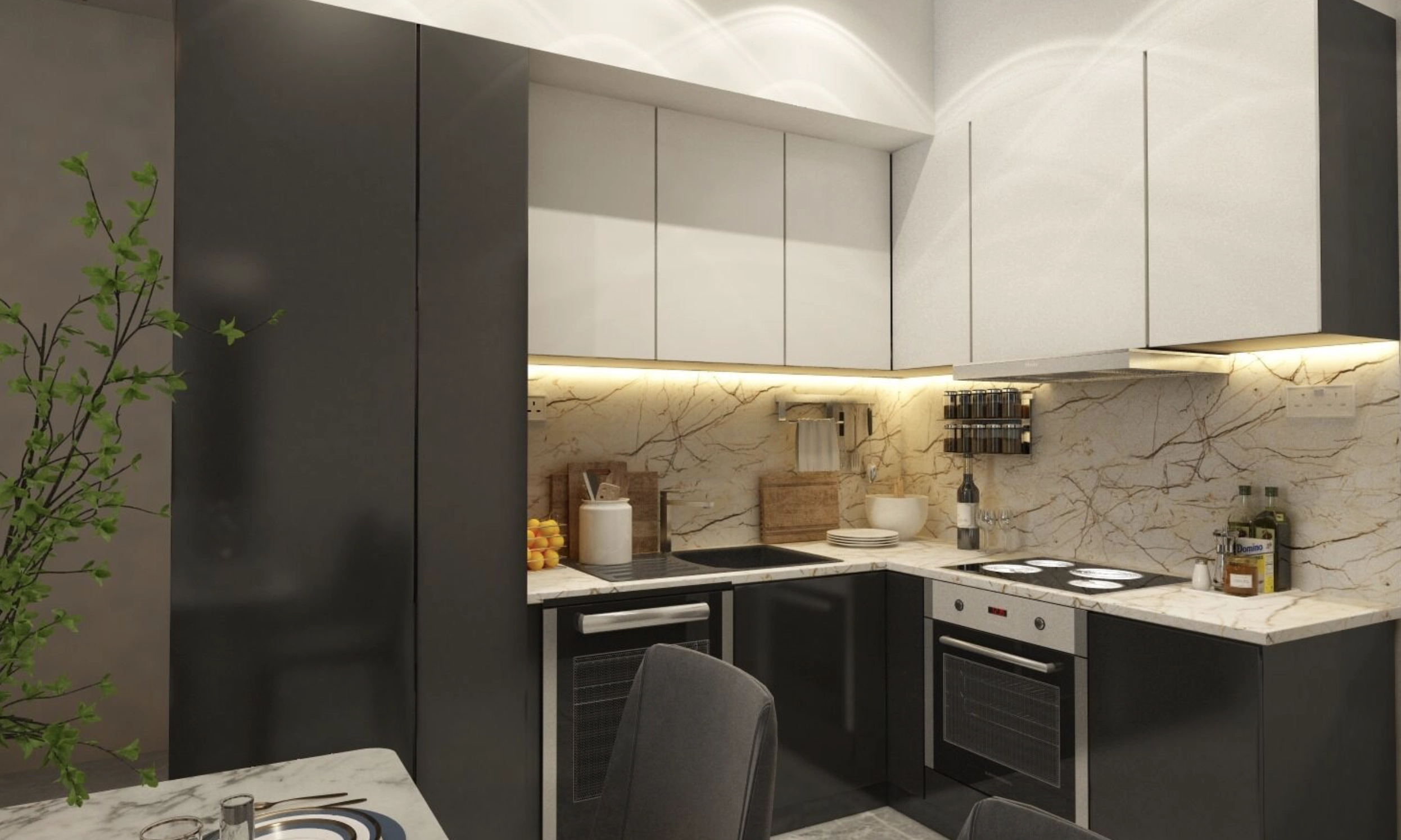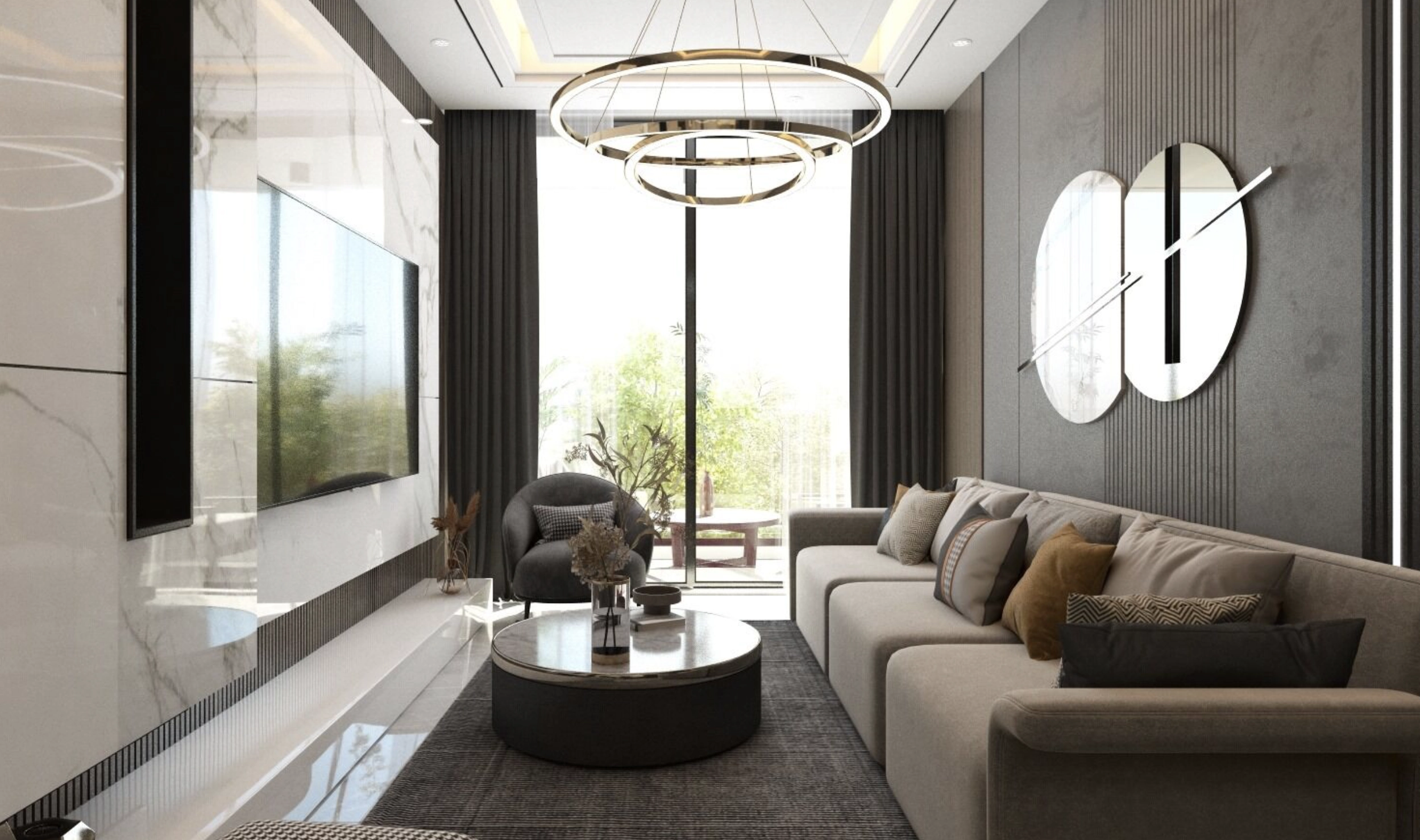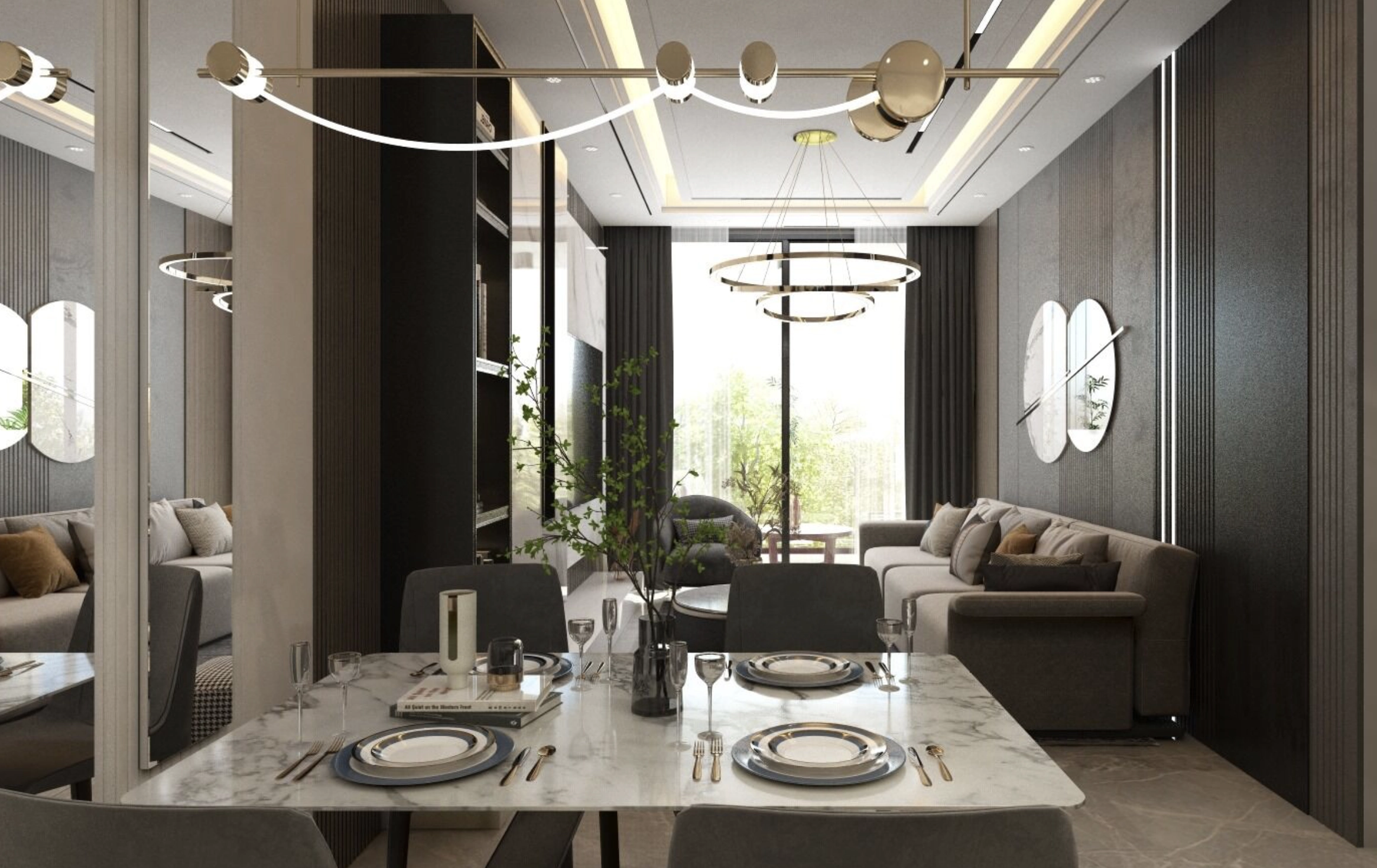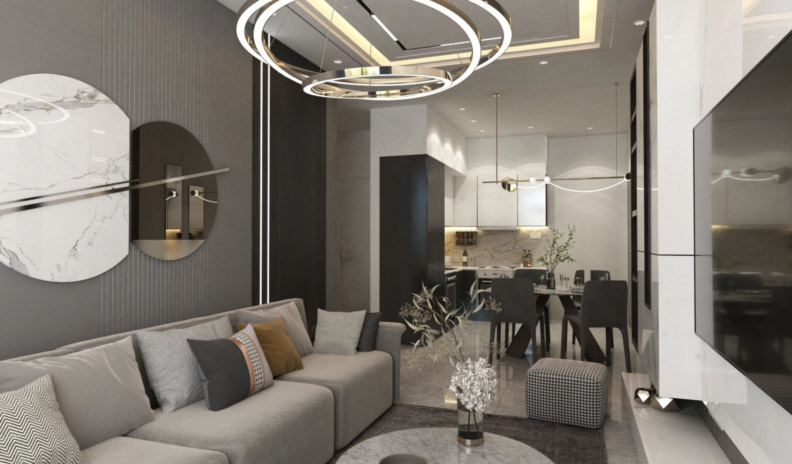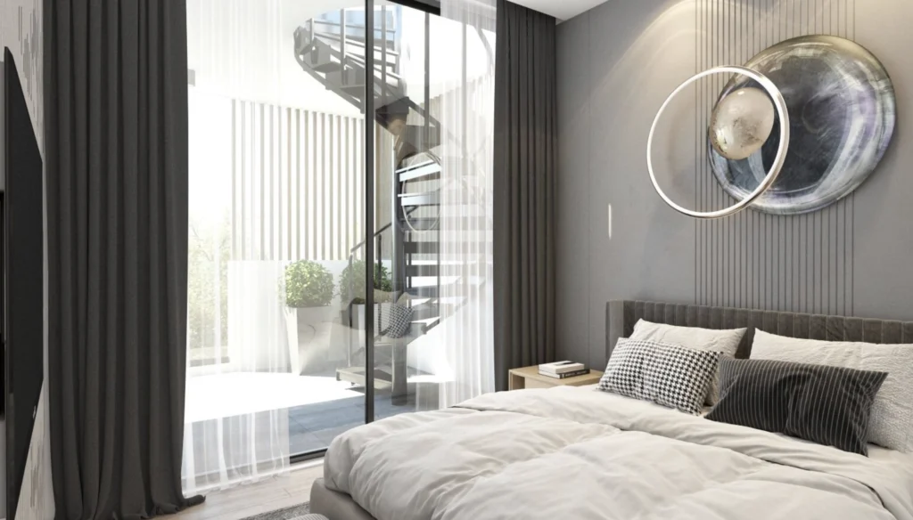 The one-bedroom apartment offers a comfortable and well-balanced layout designed for modern urban living. The open-plan living and dining area connects seamlessly with the kitchen, creating a bright and welcoming space for everyday life. Large openings allow natural light to fill the apartment, enhancing the sense of space.