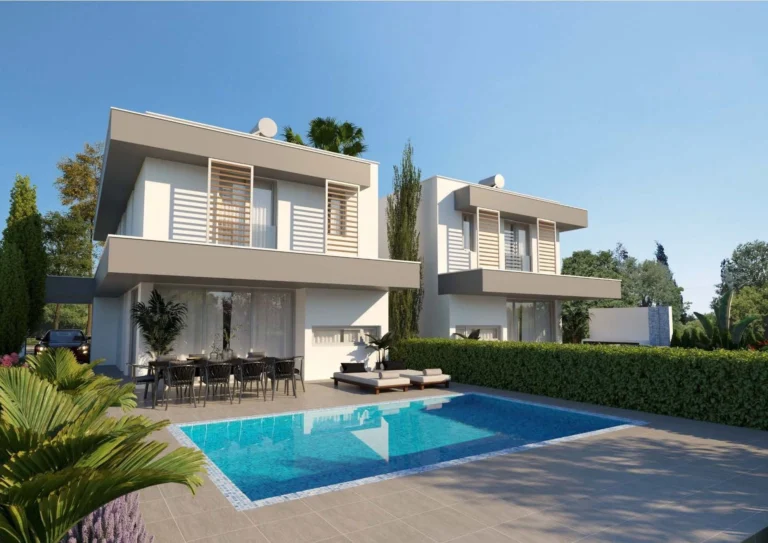 These modern four-bedroom villas are located in Pyla, a peaceful suburb of Larnaca, offering beautiful views of the surrounding natural landscape and lush green scenery. The development enjoys an excellent location close to the British University of UCLan Cyprus, the sandy beaches of Larnaca, and the city center, while Larnaca International Airport can be reached within just a 15-minute drive.