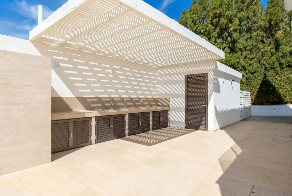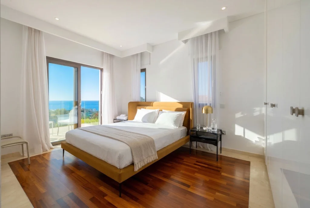 Outside, the property boasts a large private swimming pool, expansive sunbathing areas, and a dedicated BBQ space—perfect for entertaining while enjoying the spectacular sea views.