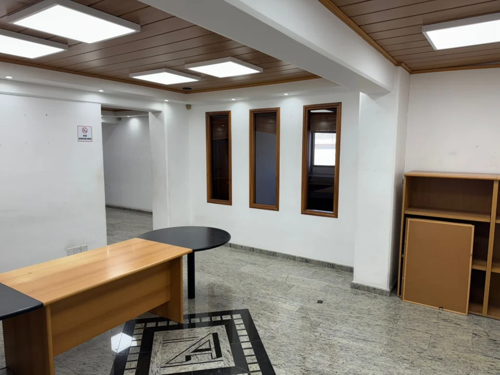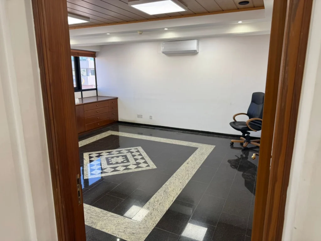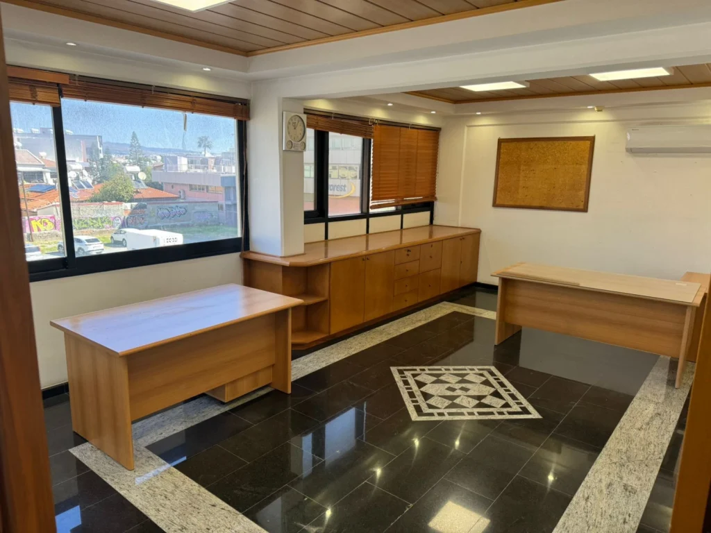 A spacious 250 m² office property for sale on Pafou Avenue in the Omonoia area of Limassol, located on the 1st floor of a well-maintained 3-storey commercial building. The property offers an excellent opportunity for both business use and investment, thanks to its prime location on a main road with easy access to the highway, city center, and public transport.