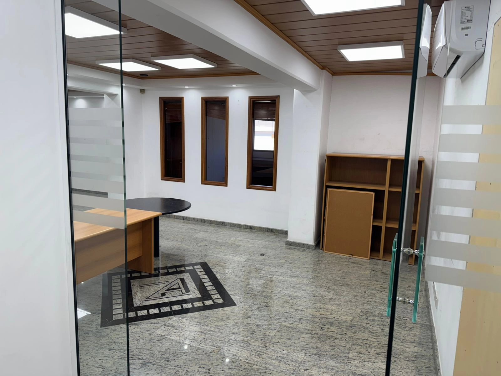 The office features reception areas, multiple closed offices, a conference/meeting room, kitchen facilities, server room, and filing room, making it ideal for professional or corporate use. The space is partially furnished and finished with marble flooring, double-glazed windows, and split-system air conditioning, ensuring comfort and functionality.