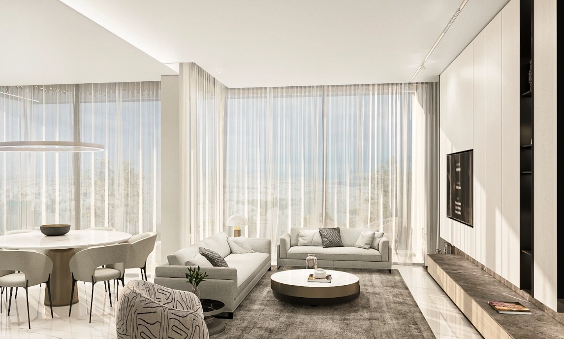 This elegant two-bedroom apartment offers a perfect combination of modern design, comfort, and functionality, ideally suited for contemporary urban living in the desirable Neapolis area of Limassol. Thoughtfully designed to maximize space and natural light, the residence provides a welcoming and practical layout that caters to both everyday living and entertaining. The apartment features a spacious open-plan living and dining area that seamlessly connects with a modern kitchen, creating a bright and airy atmosphere. Large windows and sliding doors allow abundant natural light to fill the interior while providing direct access to a private covered veranda, offering an ideal space to relax and enjoy the pleasant Mediterranean climate. Both bedrooms are generously proportioned and designed with comfort and privacy in mind. The master bedroom provides a calm and inviting retreat, while the second bedroom is perfectly suited for family members, guests, or a home office. Carefully selected finishes and modern design elements throughout the apartment create a refined and contemporary living environment. Residents benefit from the development’s prime location within walking distance of Limassol’s coastline, the vibrant seafront promenade, and a wide range of everyday amenities including supermarkets, cafes, restaurants, banks, pharmacies, and fitness centers. The area also offers easy access to cultural landmarks, parks, and the city’s main business and commercial districts. Combining modern architecture, practical living spaces, and an exceptional location near the sea, this two-bedroom apartment represents an excellent opportunity for comfortable living or a valuable real estate investment in the heart of Limassol.