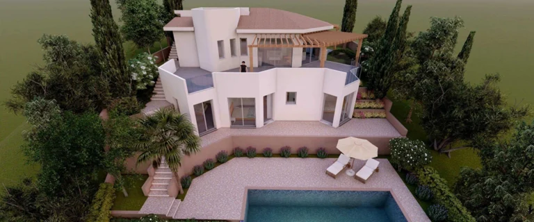 A 3-bedroom villa for sale in the Sea Caves area, Paphos near the Akamas Peninsula, a UNESCO-protected nature reserve of unspoiled beauty.The total area of the residence is 224 m2. The interiors feature a modern design, including custom-made wood and marble furniture, sophisticated gold accents, sculptural light installations, and original works of contemporary art. The master bedroom has a bathtub, a spacious walk-in shower with a double rain shower and a boutique-style walk-in closet. The designer kitchen is decorated in rich deep blue tones, complemented by hidden cabinets, a two-door refrigerator and a wine cooler. The entire residence is finished with luxurious materials, including staggered marble floors, granite countertops in the bathrooms, and an exquisite palette of deep blues, mustard yellows, and classic blacks and whites.The villa is located on a private plot of 487 m2. An 11-meter saltwater swimming pool is located on the landscaped grounds.There is a built-in premium gas grill, an outdoor shower and carefully selected Mediterranean landscaping, including mature olive trees and ceramic planters.Two pristine beaches — St. George’s Beach and Akamas Beach — are just a ten-minute walk away, and the prestigious TLC Private English School is conveniently located just five minutes from the villa.