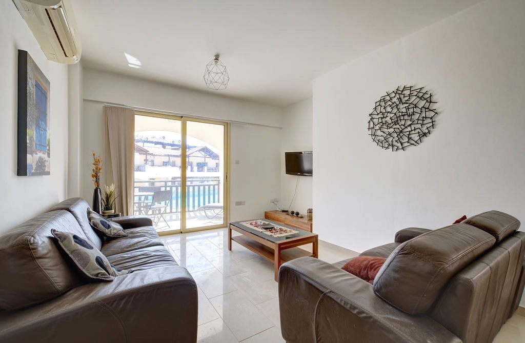 Two Bedroom Ground Floor Apartment For Sale In Tersefanou, Larnaca with Title Deeds Available This beautifully presented ground floor apartment is offered fully furnished with quality fixtures and fittings, making it an ideal turnkey property ready for immediate occupation or rental. Upon entering the property, you are welcomed into a bright and spacious open-plan living area that seamlessly combines the kitchen, dining, and lounge spaces. The well-designed corner kitchen provides ample storage and worktop space, is fully equipped and features a convenient breakfast bar perfect for casual dining. The comfortable lounge and dining area is fitted with air conditioning and benefits from large patio doors that open onto a private covered balcony. From here, residents can enjoy pleasant views over the beautifully maintained communal gardens and swimming pool, creating a relaxing outdoor space ideal for entertaining or unwinding. The apartment offers two generously sized double bedrooms, both complete with fitted wardrobes, bedroom 1 with patio doors onto the balcony. There is a family bathroom. Residents of the development benefit from excellent communal facilities, including a large swimming pool, a separate children’s pool, and secure fob-controlled access to the complex. The property also includes a designated covered parking space. This property represents an excellent opportunity as a holiday home, permanent residence, or a strong rental investment in a well-maintained development. - 2 Double bedroom with fitted wardrobes - Open plan lounge kitchen dining - Fully Fitted Kitchen - Family bathroom - Air conditioning - Ceiling fan - Allocated covered parking - Communal pool accessed by fob - Communal pool bar - Fully Furnished - Internal 70 m2 - Balcony 18 m2 with distant sea view - 10 minutes to sea and beach - 10 minutes to local shops and amenities - 10 minutes to Larnaca International Airport - 60 minutes to golf course - Cyprus Legislation – Title Deeds applicant submitted - Energy Efficiency TBC Tersefanou A village located 14 km outside Larnaca and is easily accessed from either the motor way, or from Larnaca via Kiti, Tersefanou is a very traditional small Cypriot community with a handful of Tavern’s, a school, town hall and church and local amenities. The centre of the village although enhanced in the last few years still retains its traditional coffee shops and small grocery stores. The village really is a step back in time to old Cyprus with traditional wood shutters on flat roofed single level homes. ———— * Title Deeds Avaliable * Covered Veranda * Air Conditioning * Furnished * Communal Pool * Resale * Energy Efficiency TBC Tersefanou Tersefanou County: Larnaca Sale Type: For Sale Ref #: EPCC5892