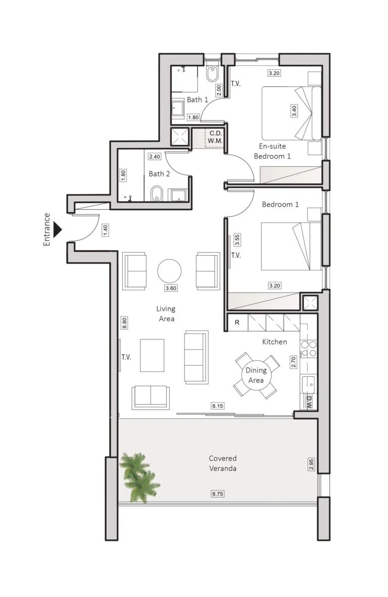 This modern two-bedroom apartment is located in a contemporary residential complex just 400 meters from the coastline in Larnaca, offering an ideal combination of convenience, lifestyle, and coastal living.