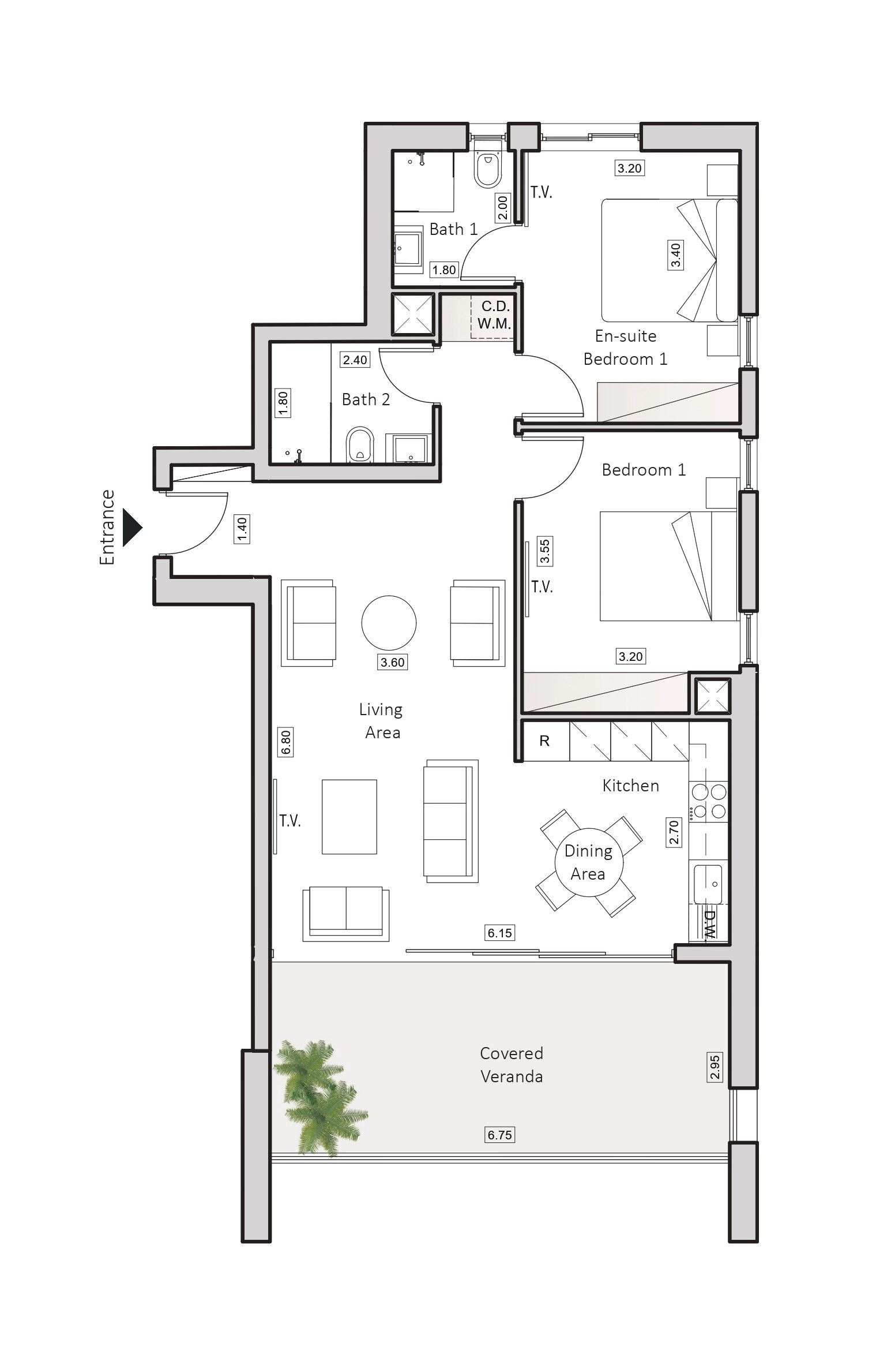 • Covered Veranda: 21 m²