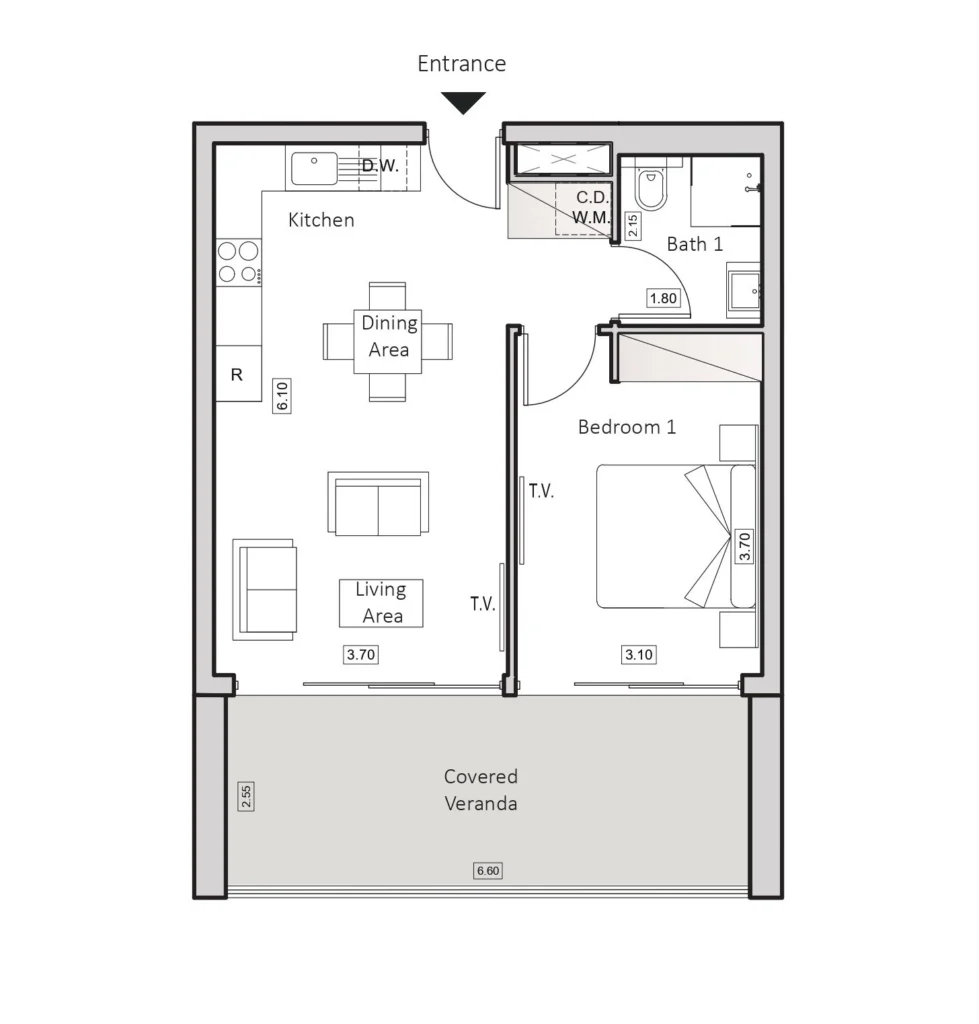 This modern one-bedroom apartment is located in a contemporary residential complex just 400 meters from the coastline in Larnaca, offering an excellent combination of comfort, convenience, and coastal living. The apartment features a well-planned layout with bright interiors, quality finishes, and a contemporary design, making it ideal for both personal residence and rental investment.