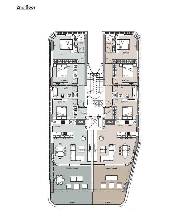 This exclusive residential complex comprises just 5 apartments and 2 luxurious penthouses with private rooftop pools. Each apartment includes two parking spaces, a storage room, and a maid’s room.